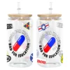 All of our Glass Can 16oz are custom-made-to-order and handcraftedwith high-quality glass material and accompanied by a convenient hard plastic straw and a wooden lid with a convenient hold for straw.