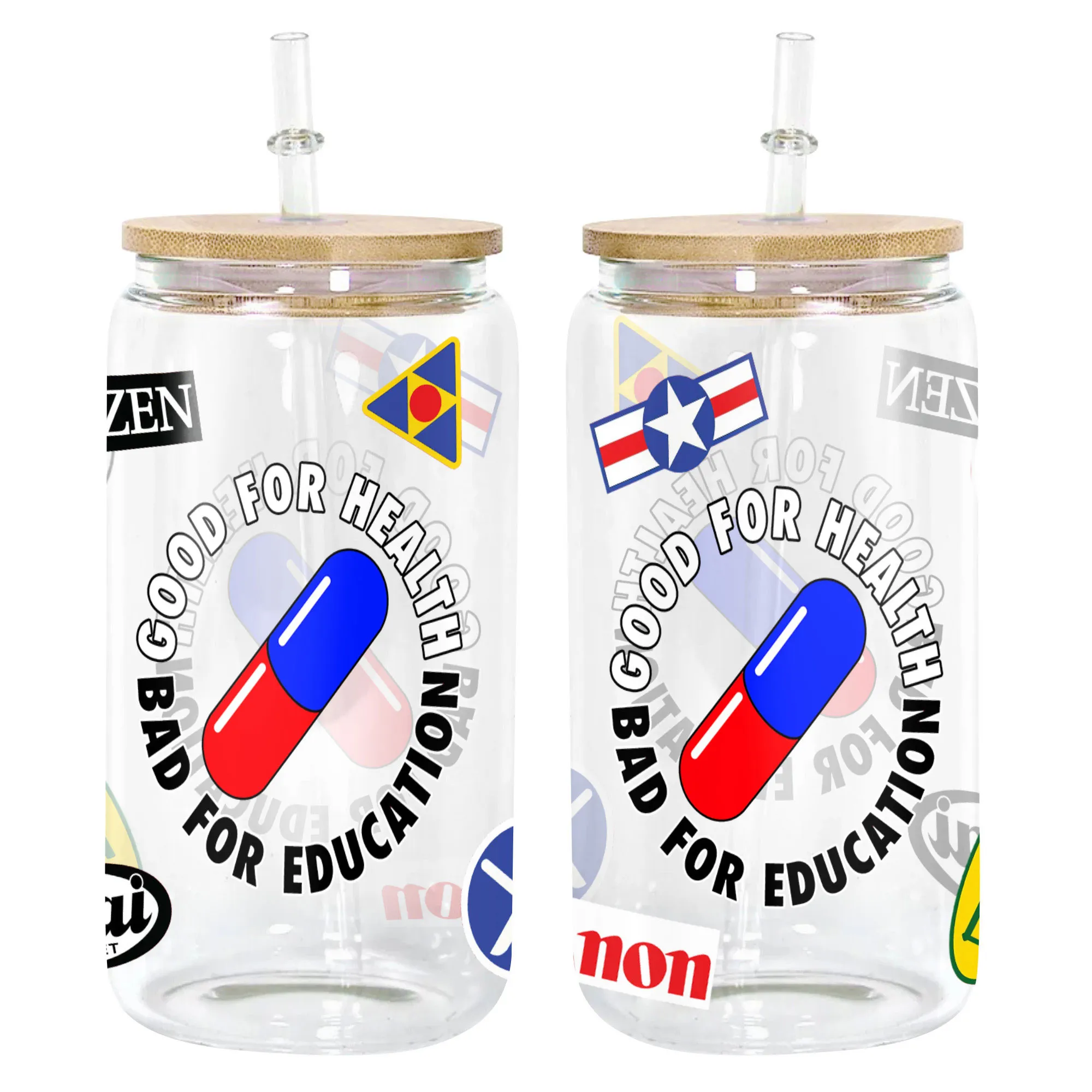 Akira Kaneda Good For Health Bad For Education Anime Glass Can 16oz Custom Water Bottle