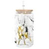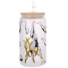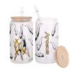 All of our Glass Can 16oz are custom-made-to-order and handcraftedwith high-quality glass material and accompanied by a convenient hard plastic straw and a wooden lid with a convenient hold for straw.