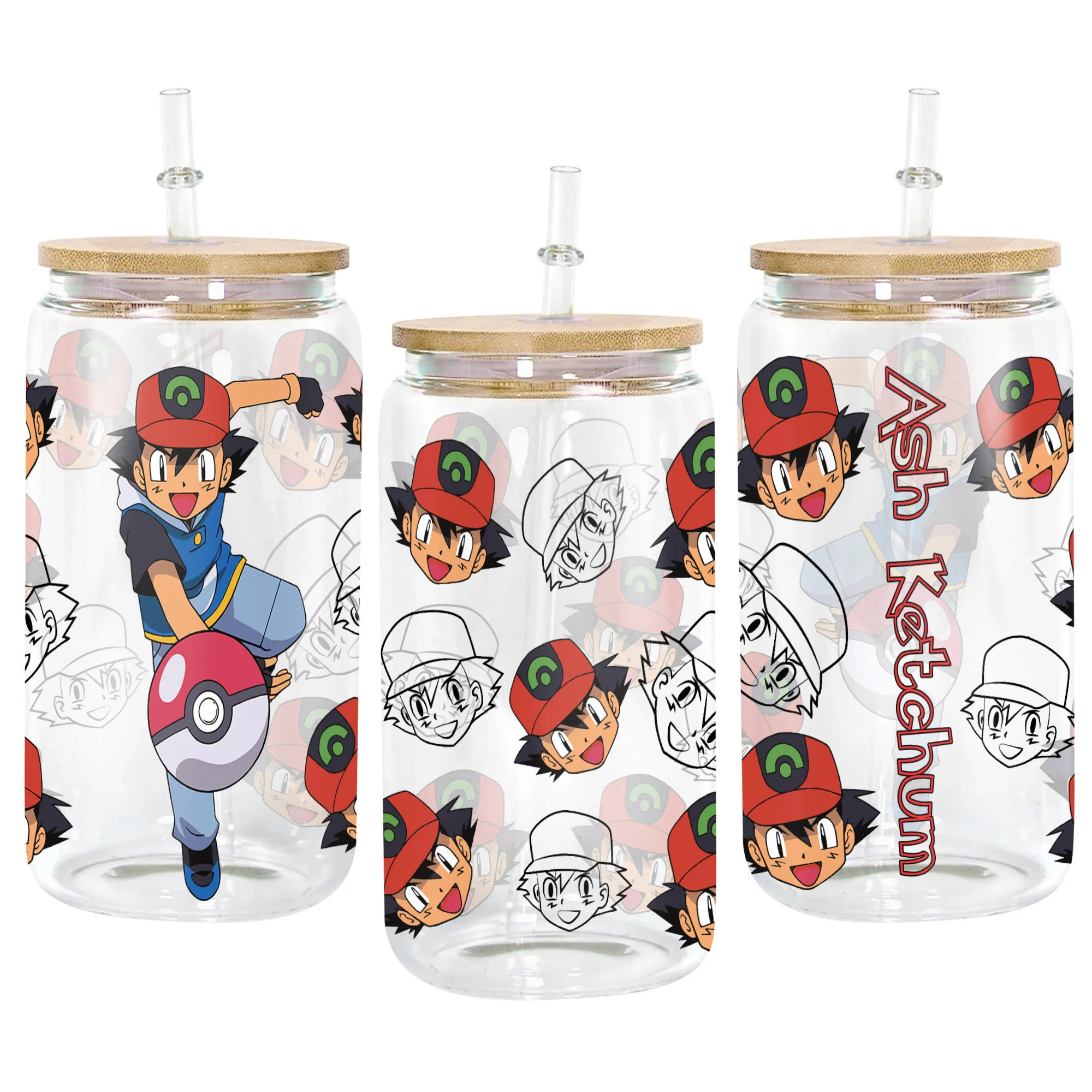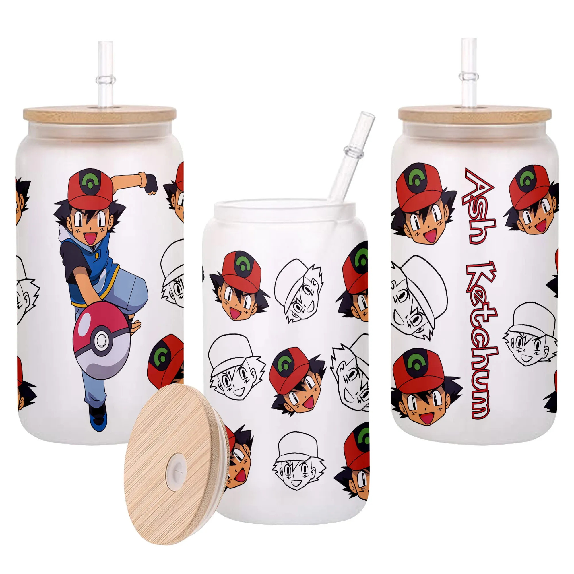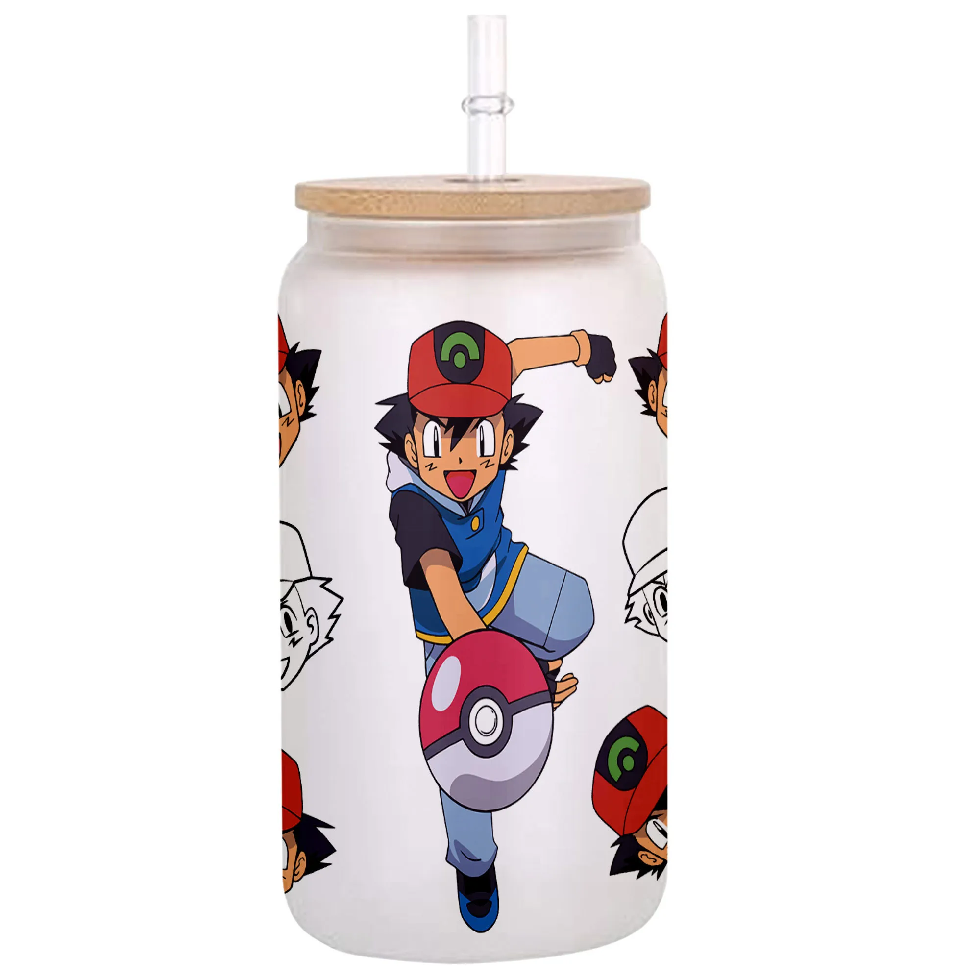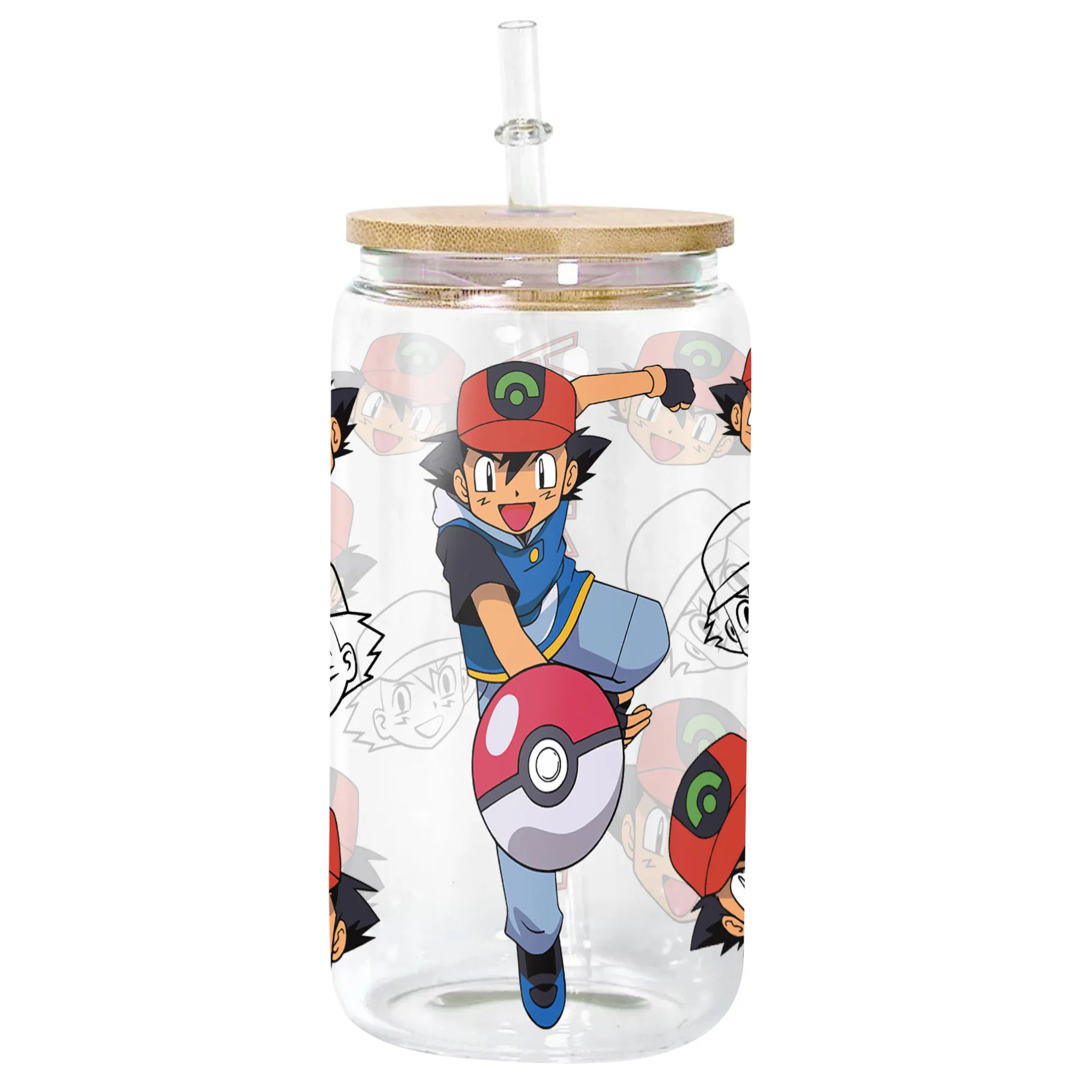 Ash Ketchum Glass Can 16oz Anime Personalized Name