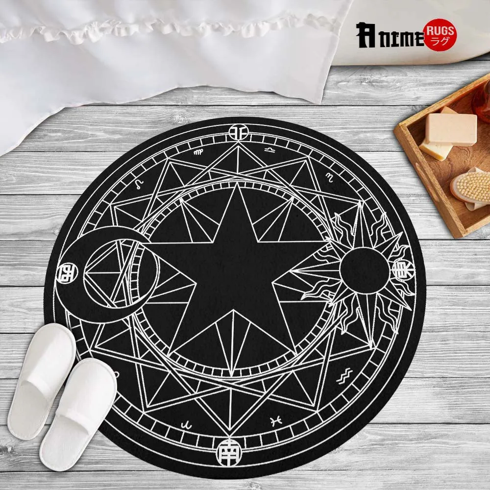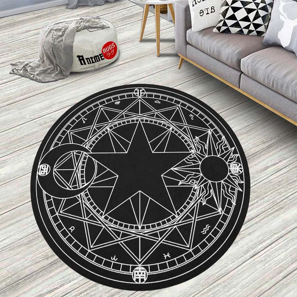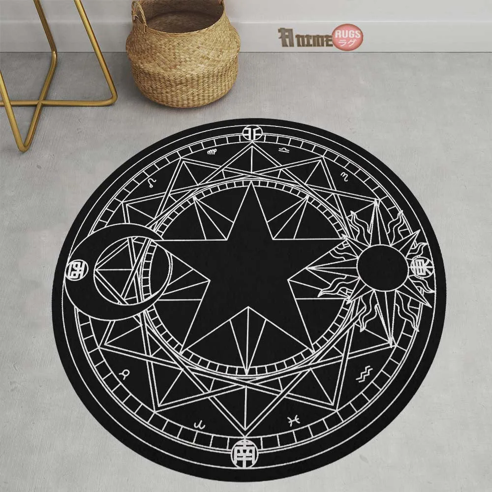 Black White Magic Circles Round Rug Custom Cardcaptor Sakura Anime Room Mats