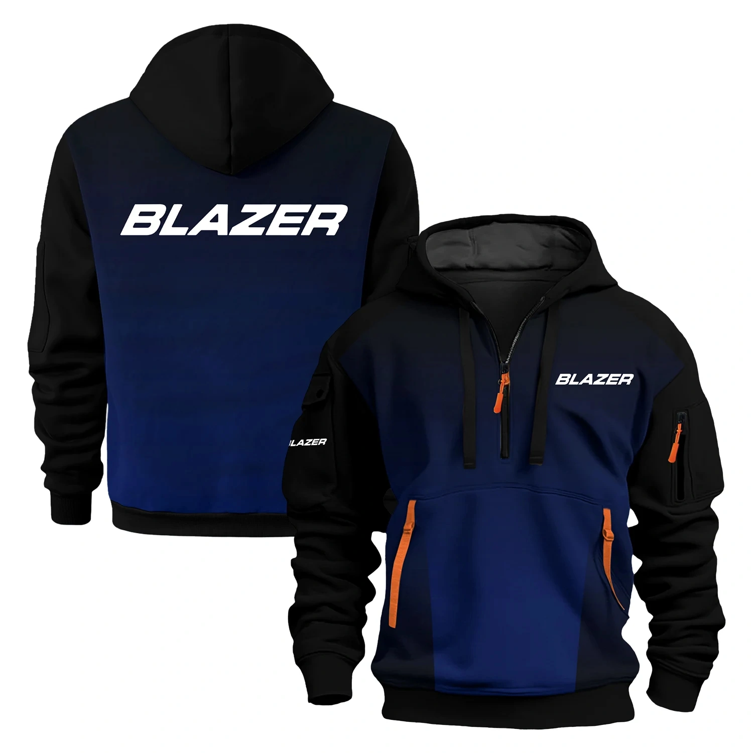 Elevate your wardrobe with our Blazer hoodie half zipper half zipper, meticulously crafted for both function and fashion. Featuring long sleeves for added warmth and coverage, this hoodie keeps you comfortable in cooler conditions. The hooded neckline adds a modern, trendy touch to the ensemble, making it a perfect choice for those who appreciate a contemporary look.