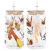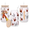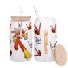 All of our Glass Can 16oz are custom-made-to-order and handcraftedwith high-quality glass material and accompanied by a convenient hard plastic straw and a wooden lid with a convenient hold for straw.