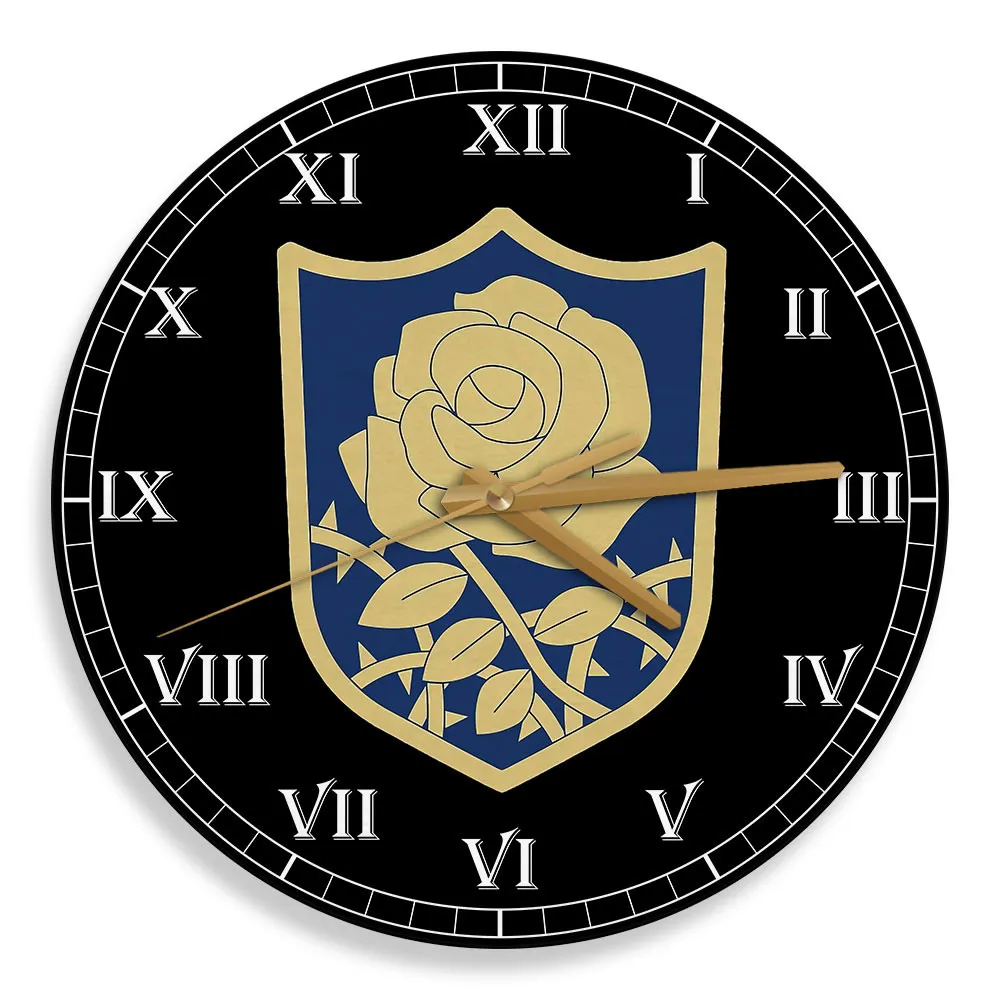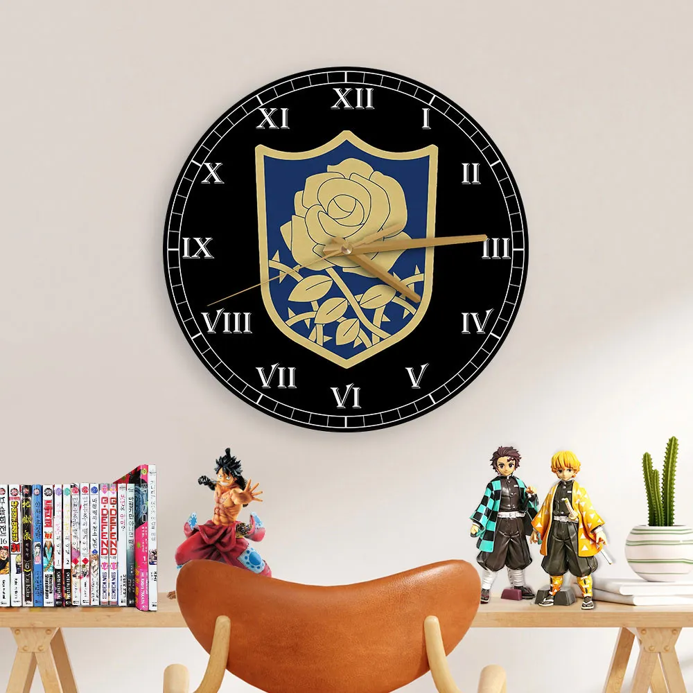 Blue Rose Symbol Wooden Clock Anime Wall Clock