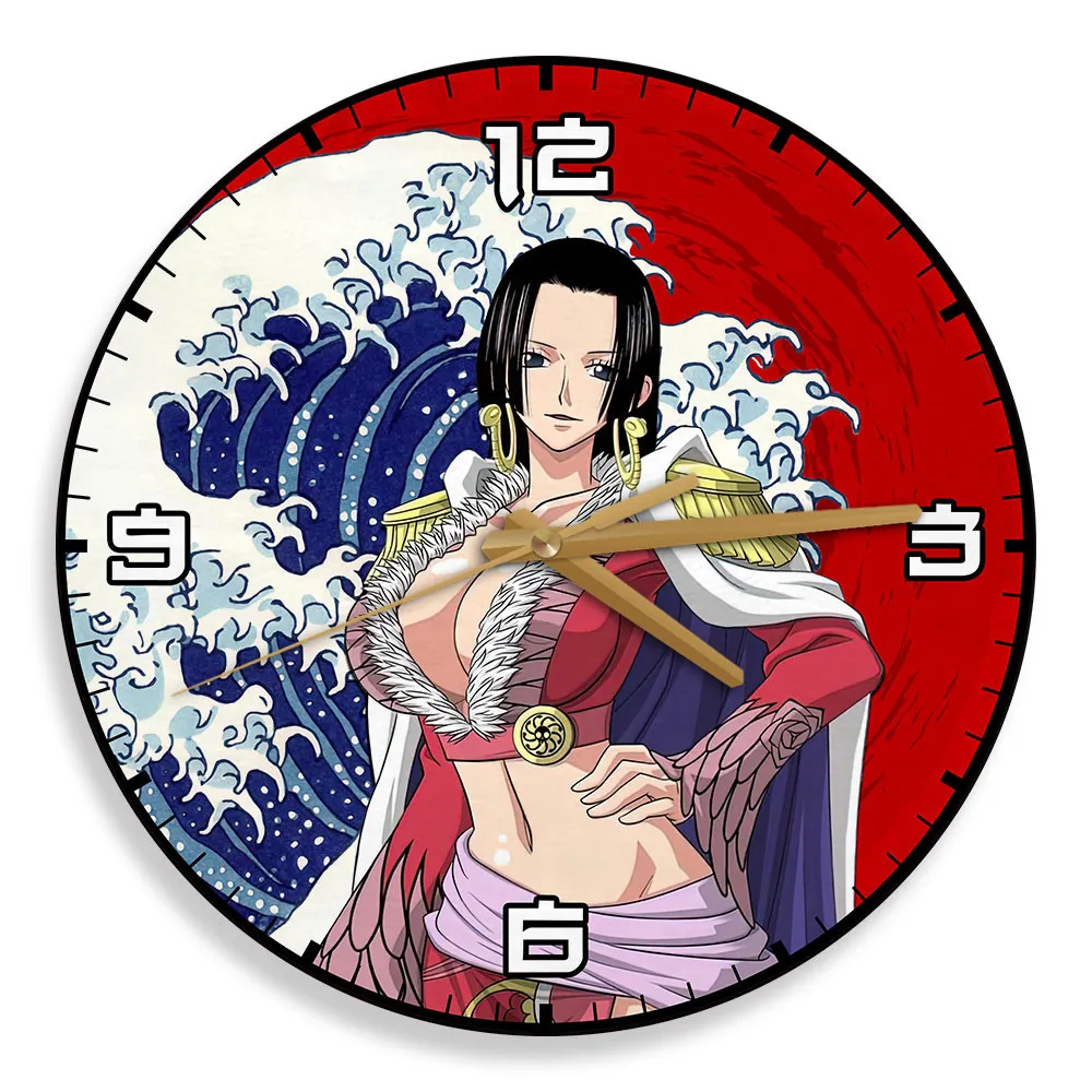 Boa Hancock Kanagawa Wave Red Sun Anime Wooden Wall Clock