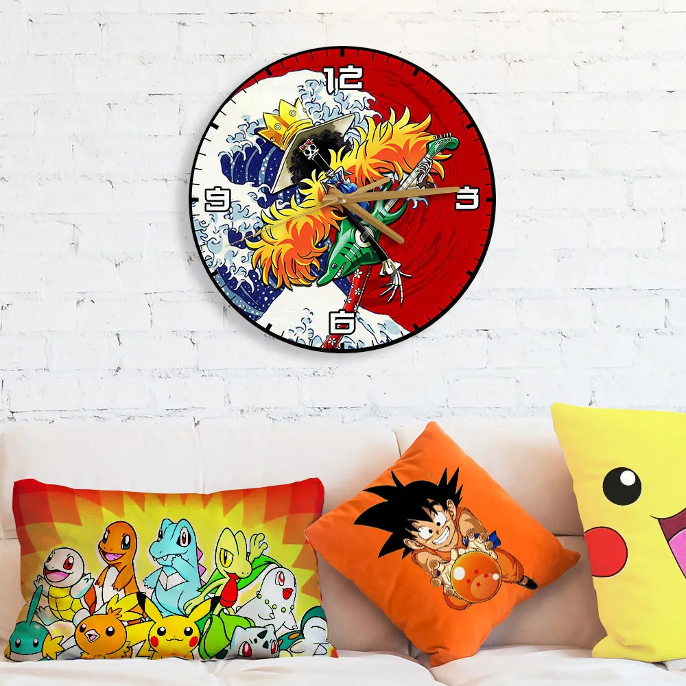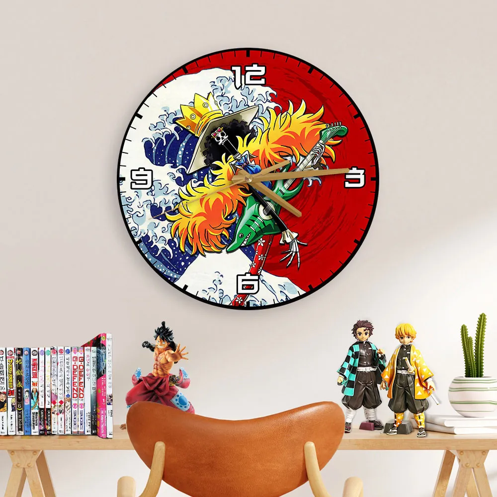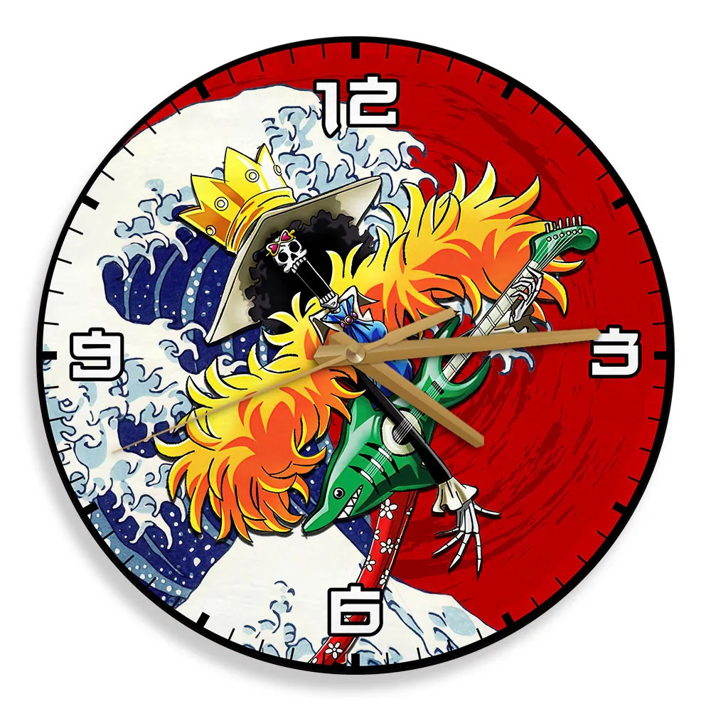 Brook Kanagawa Wave Red Sun Anime Wooden Wall Clock