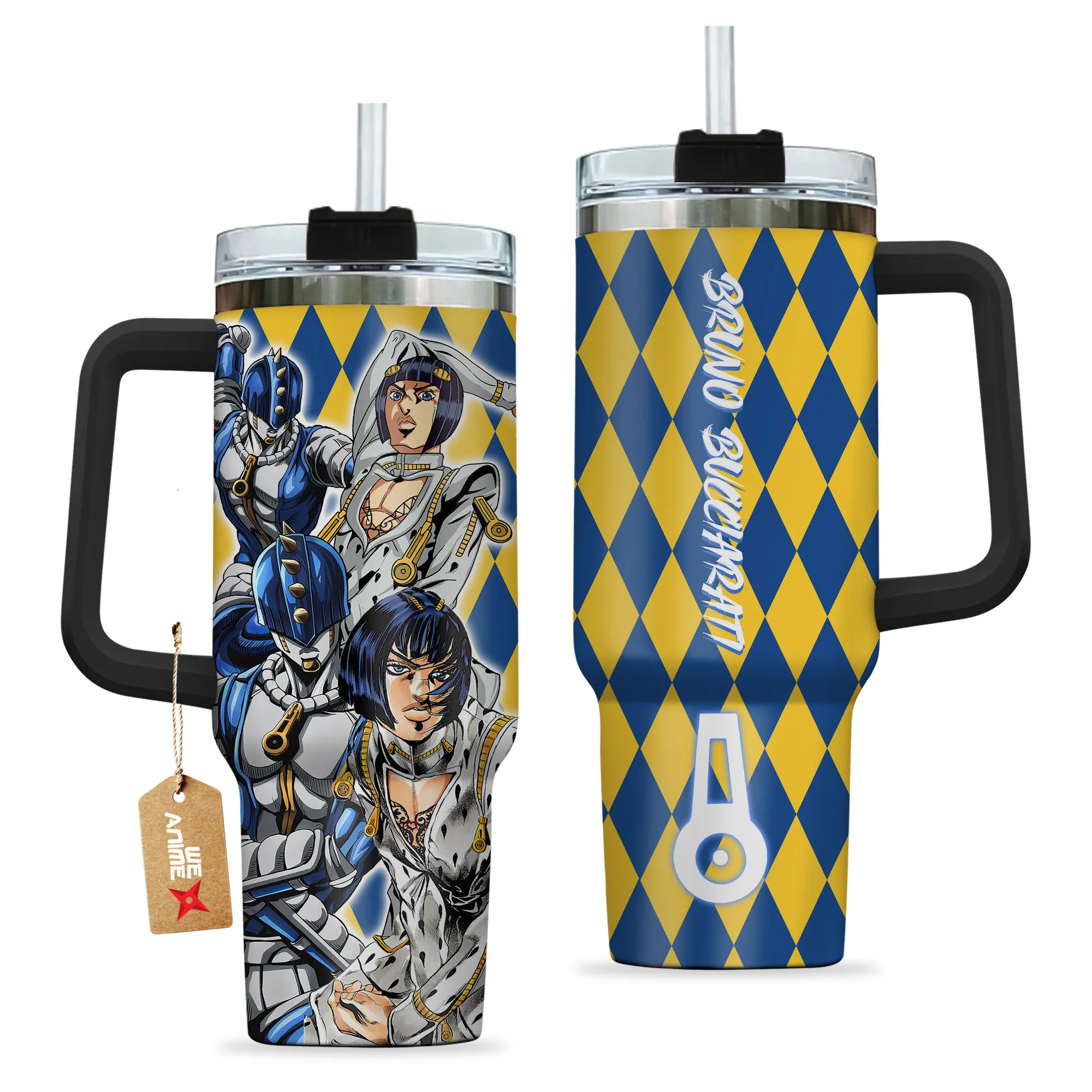 Bruno Bucciarati Anime 40oz Tumbler Cup With Handle Personalized NameHer Goku 40oz Travel Tumbler With Handle Personalized Anime Valentine Cup
