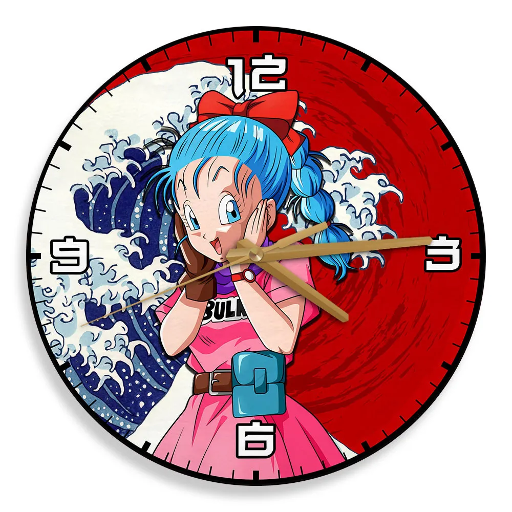 Bulma Kanagawa Wave Red Sun Anime Wooden Wall Clock
