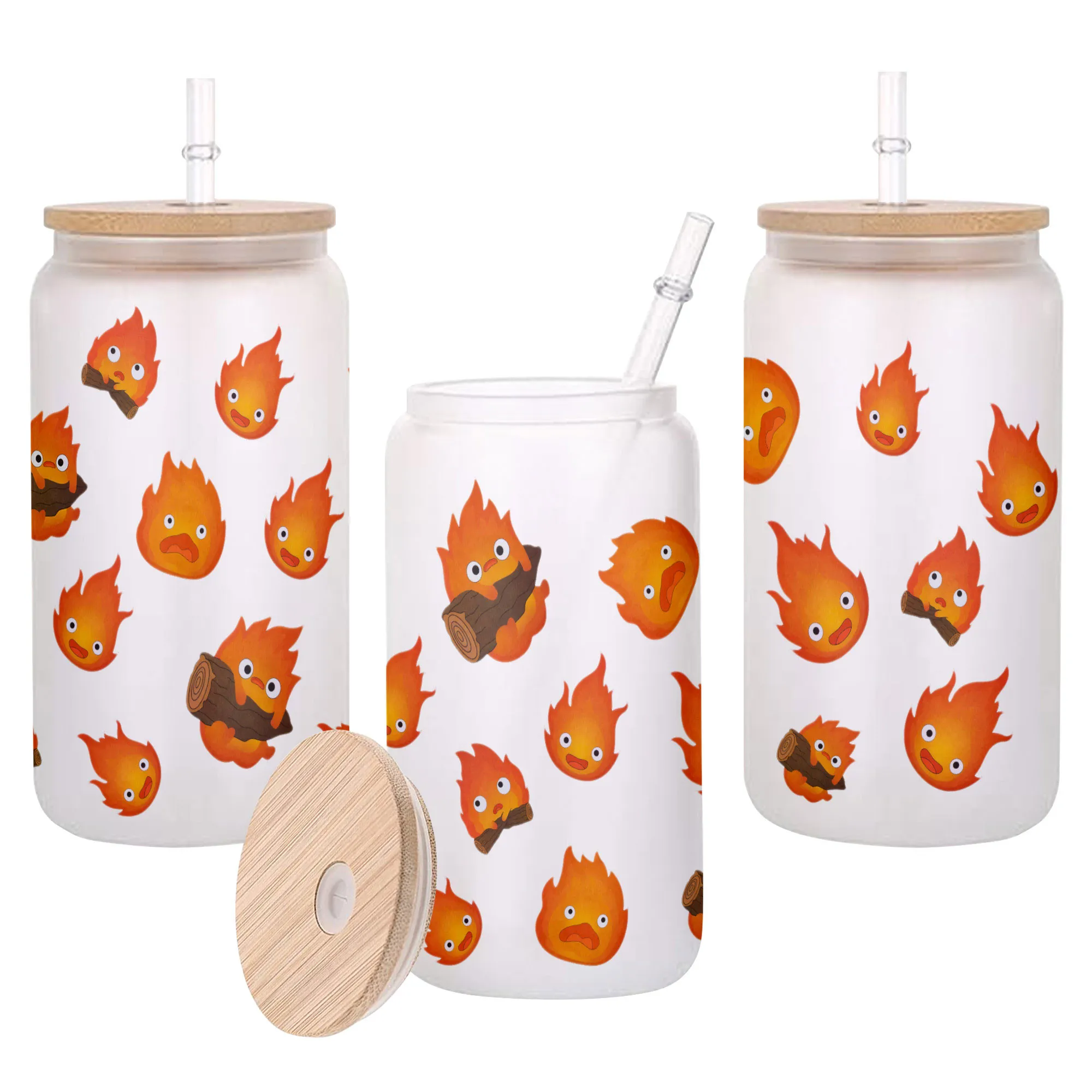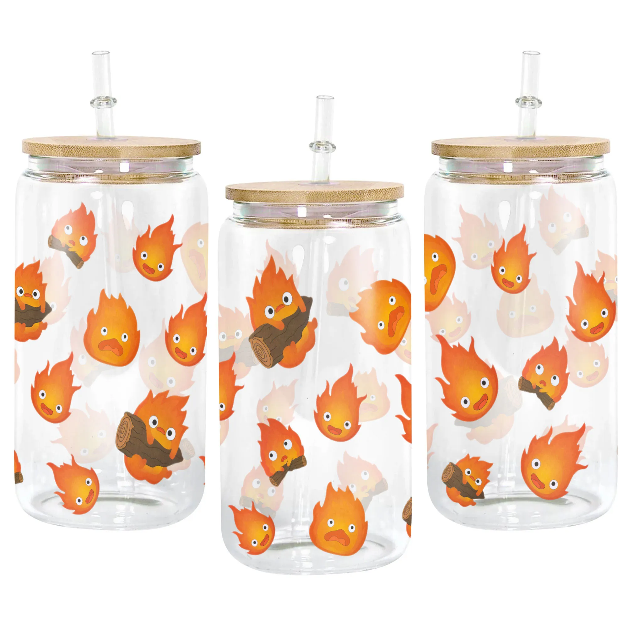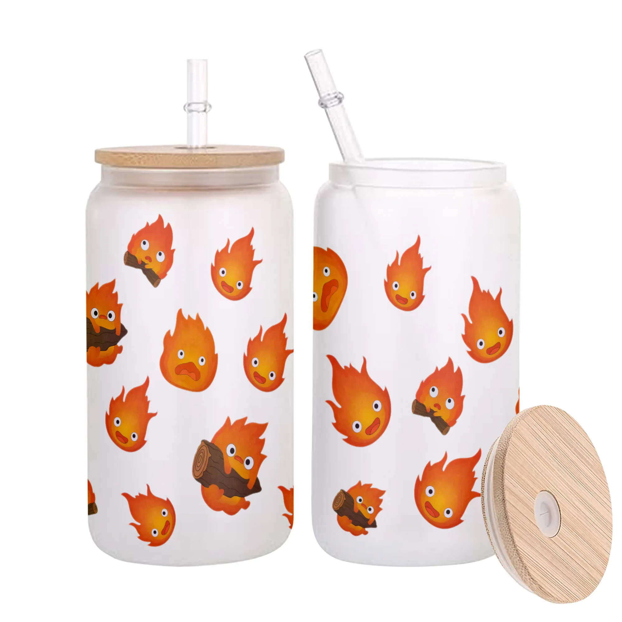 Calcifer Anime Glass Can 16oz Custom Water Bottle