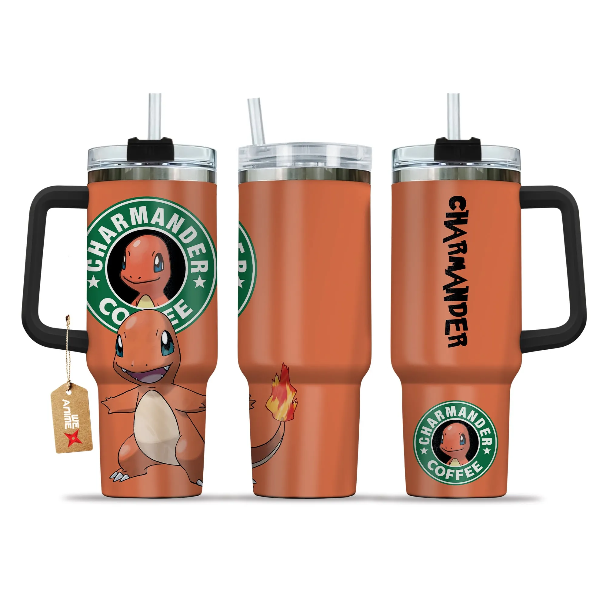 Charmander Coffee 40oz Travel Tumbler With Handle Personalized Anime Accessories