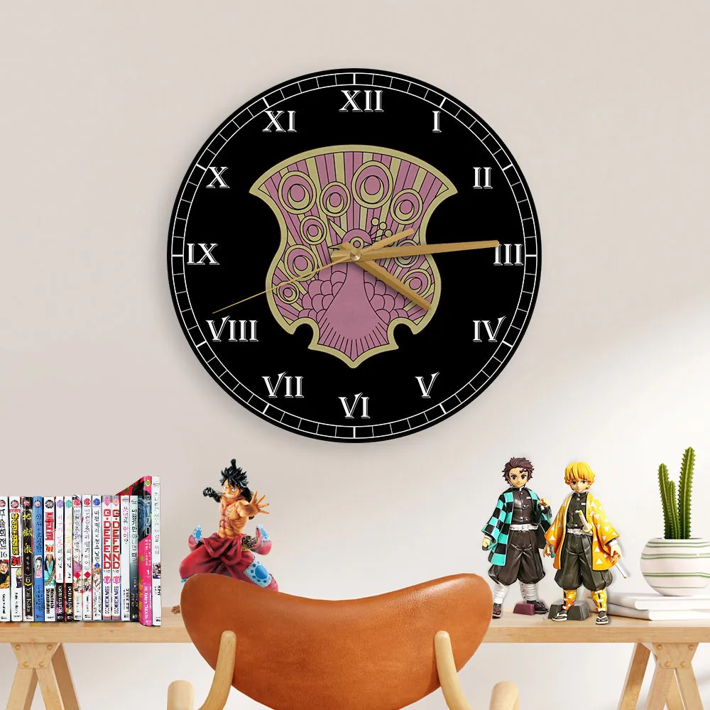 Coral Peacock Symbol Wooden Clock Anime Wall Clock