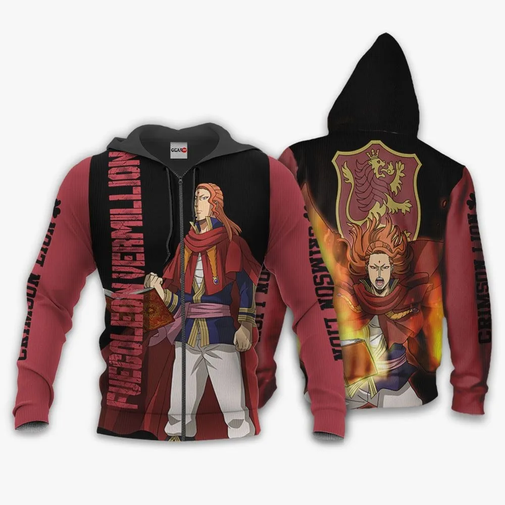 Crimson Lion Fuegoleon Vermillion Zip Hoodie Black Clover Anime