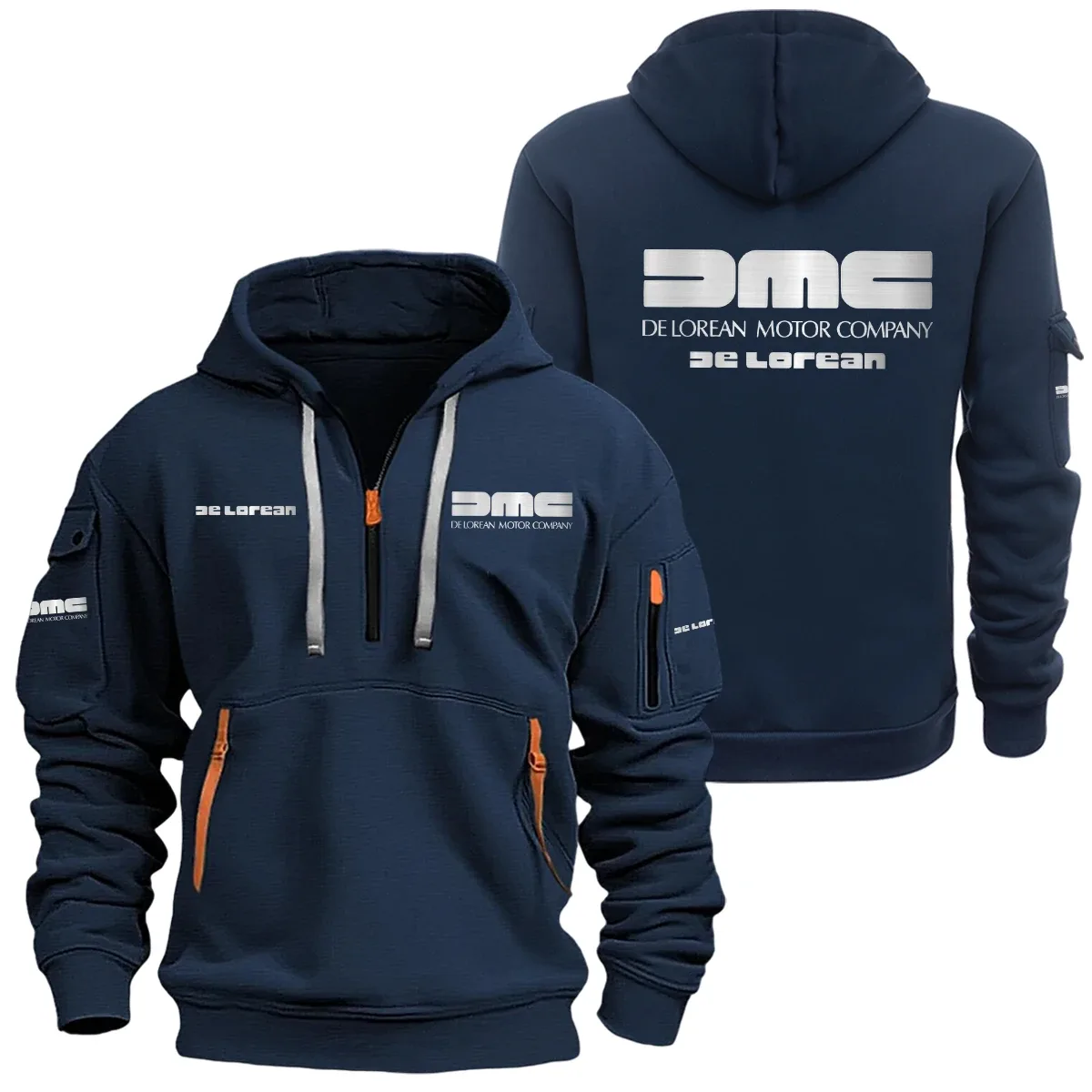 Elevate your wardrobe with our DeLorean DMC-12 hoodie half zipper half zipper, meticulously crafted for both function and fashion. Featuring long sleeves for added warmth and coverage, this hoodie keeps you comfortable in cooler conditions. The hooded neckline adds a modern, trendy touch to the ensemble, making it a perfect choice for those who appreciate a contemporary look.