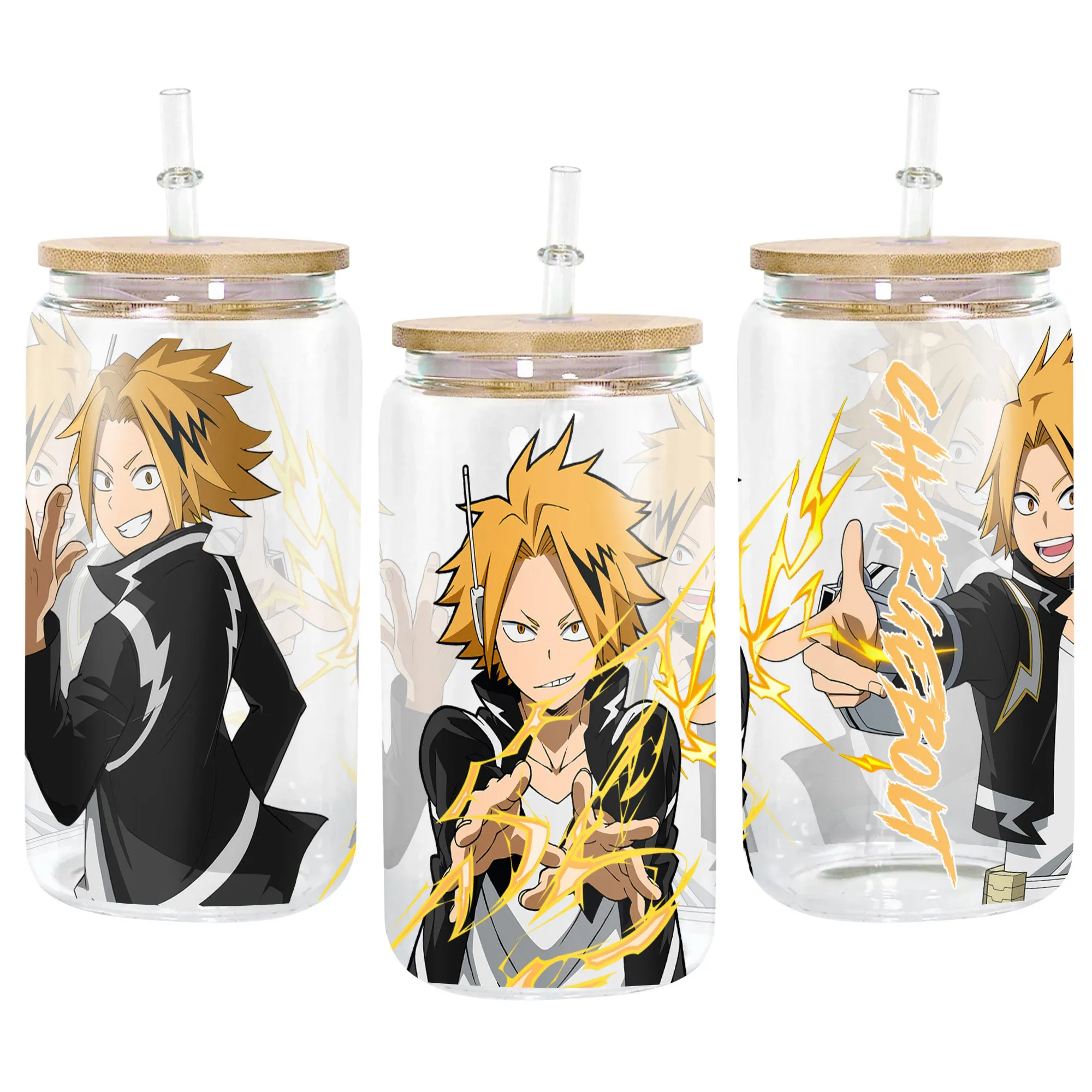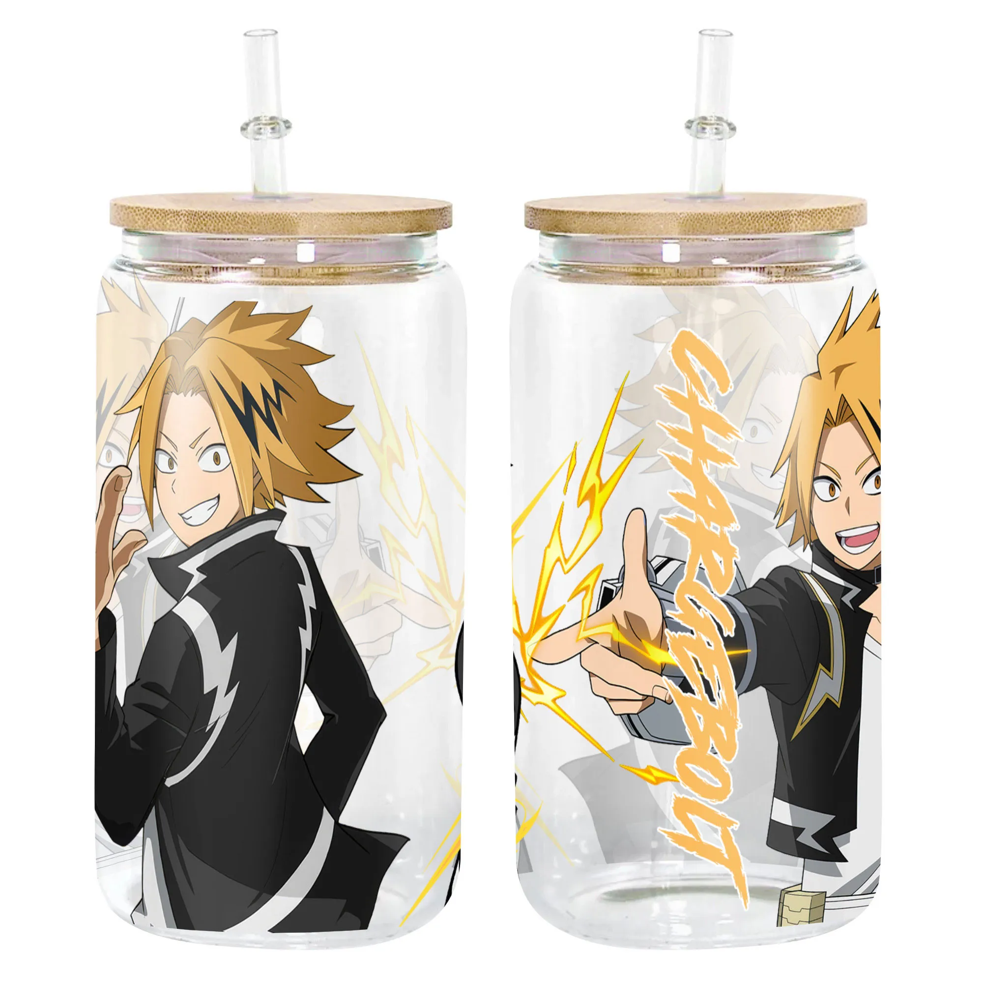 Denki Kaminari (Chargebolt) Anime Glass Can 16oz Custom Personalized Water Bottle