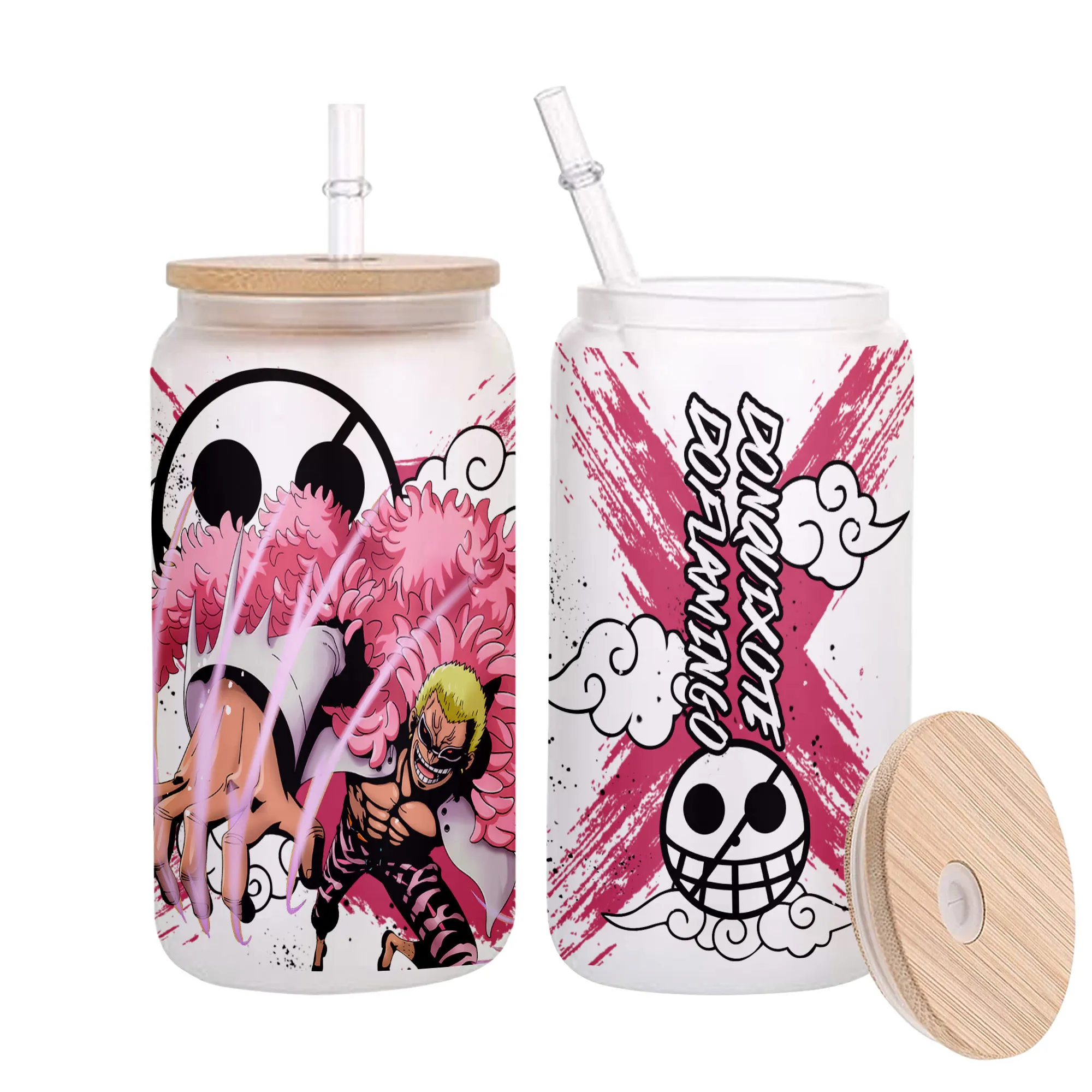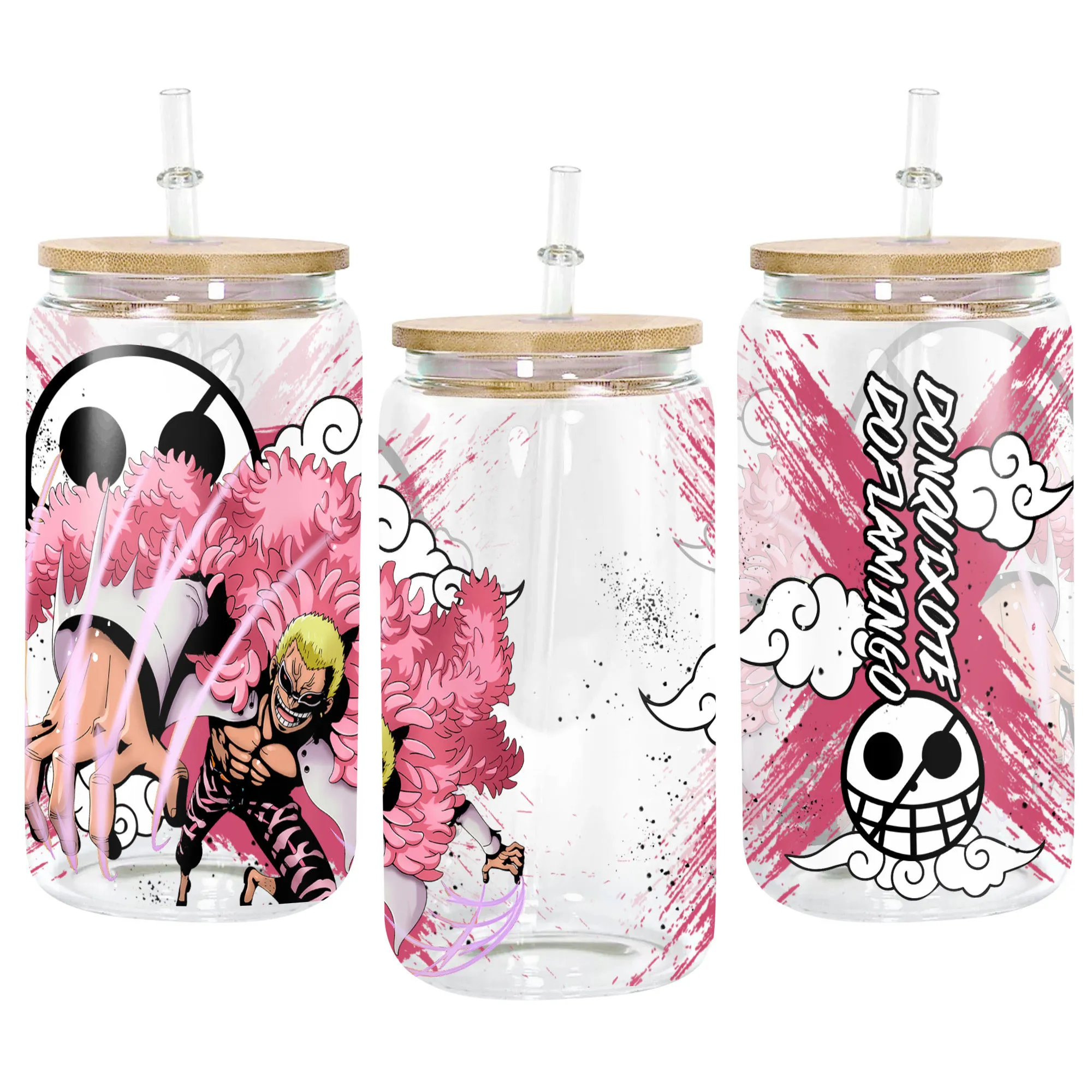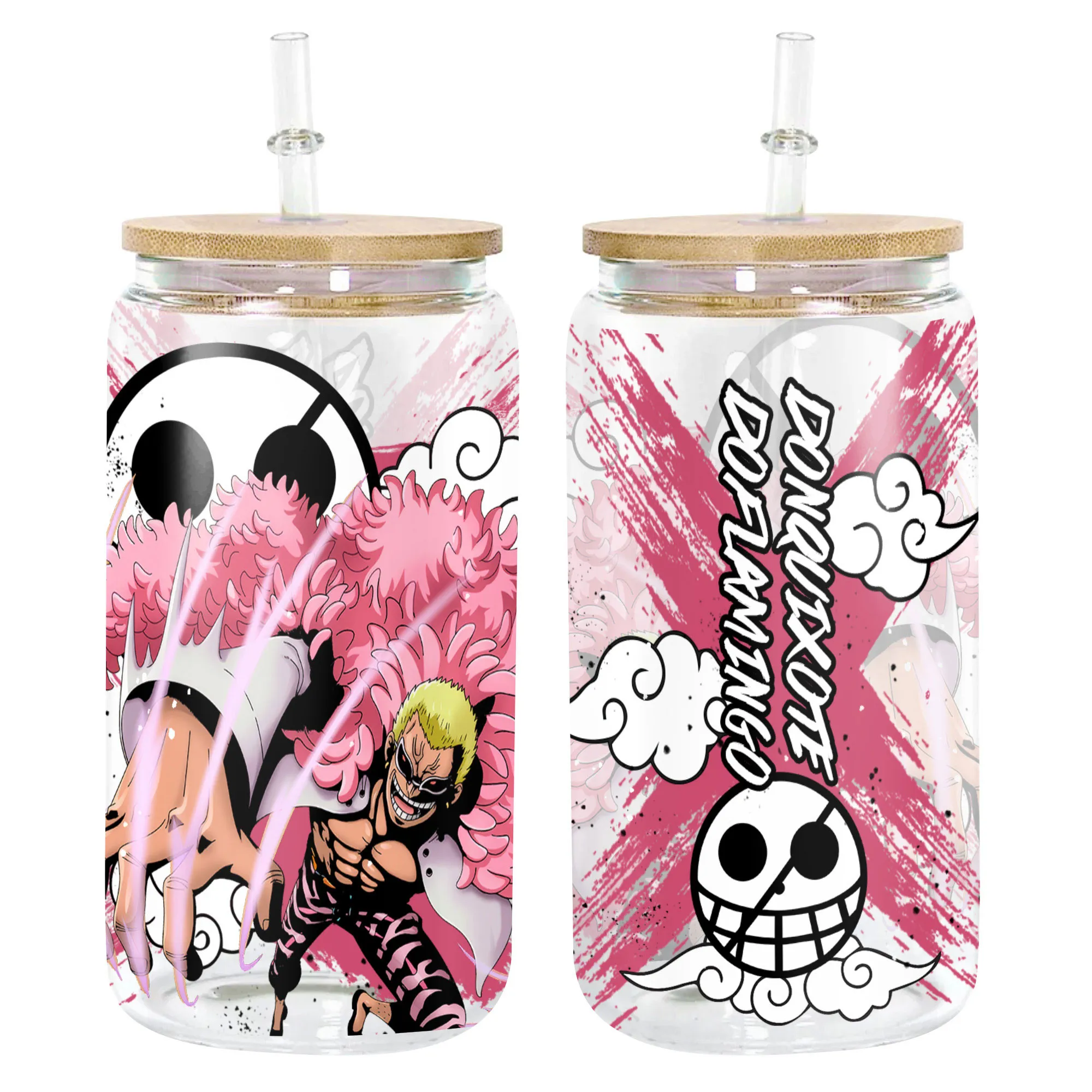 Donquixote Doflamingo Anime Glass Can 16oz Custom Personalized Water Bottle