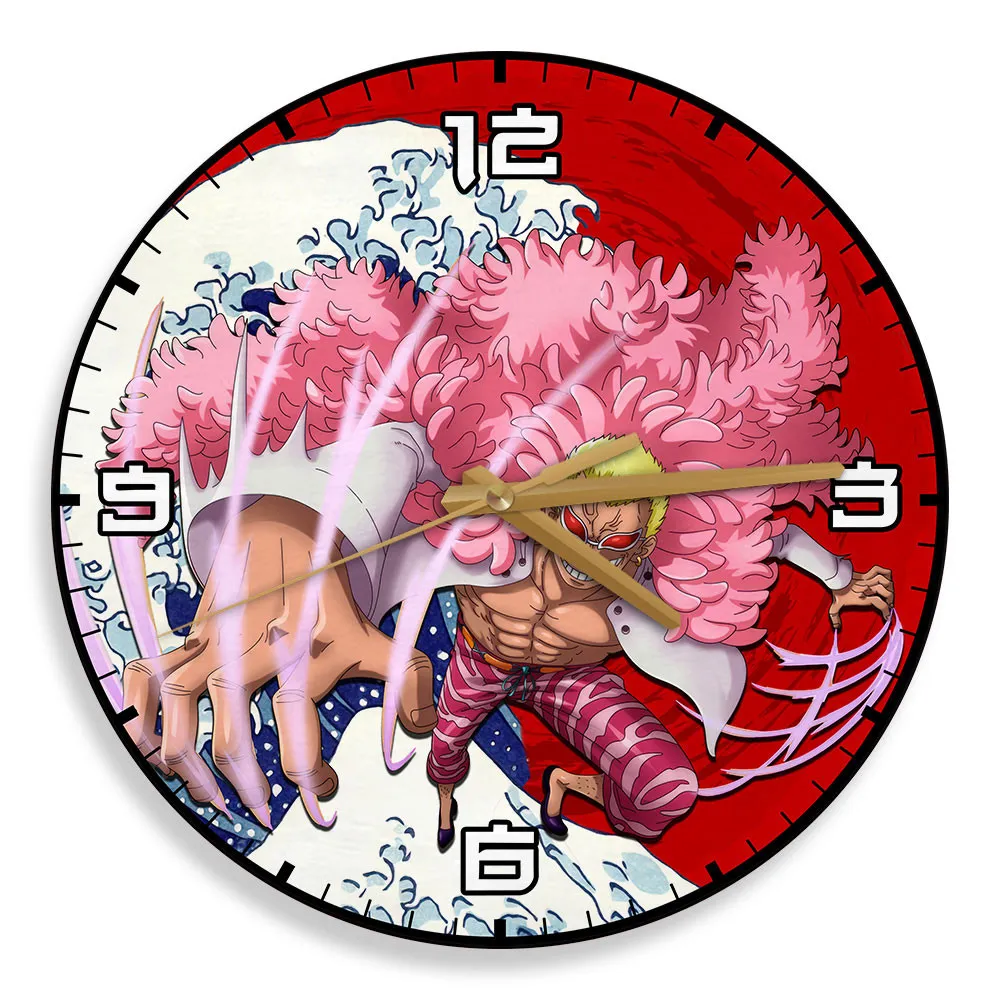 Donquixote Doflamingo Kanagawa Wave Red Sun Anime Wooden Wall Clock-Wexanime