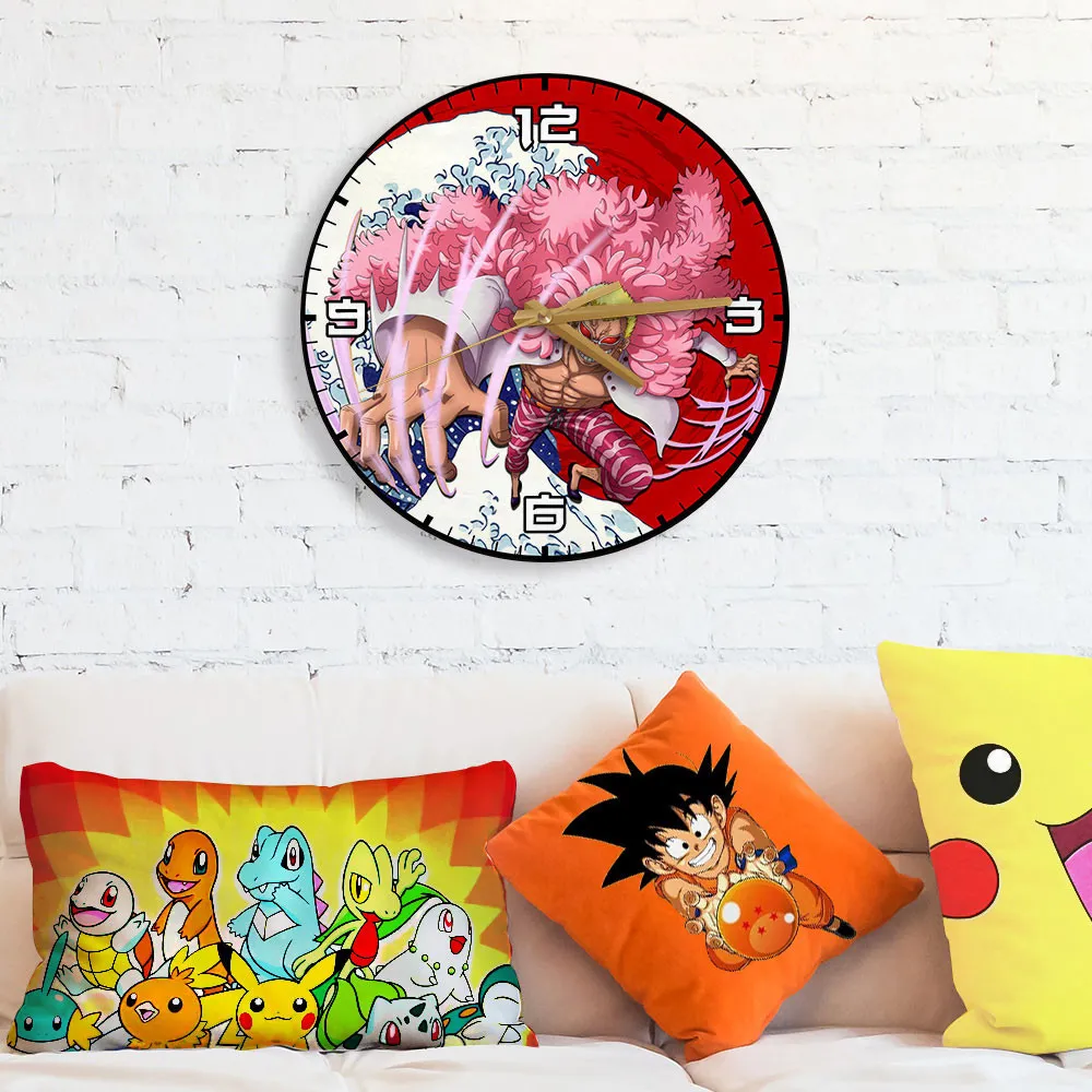 Donquixote Doflamingo Kanagawa Wave Red Sun Anime Wooden Wall Clock