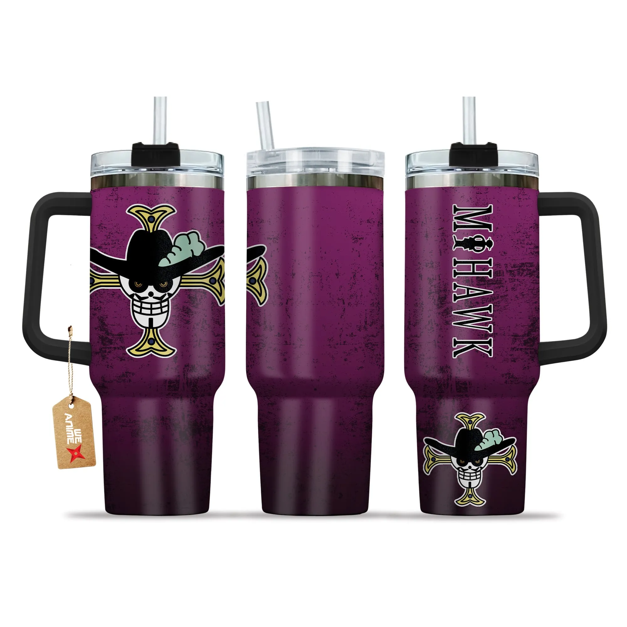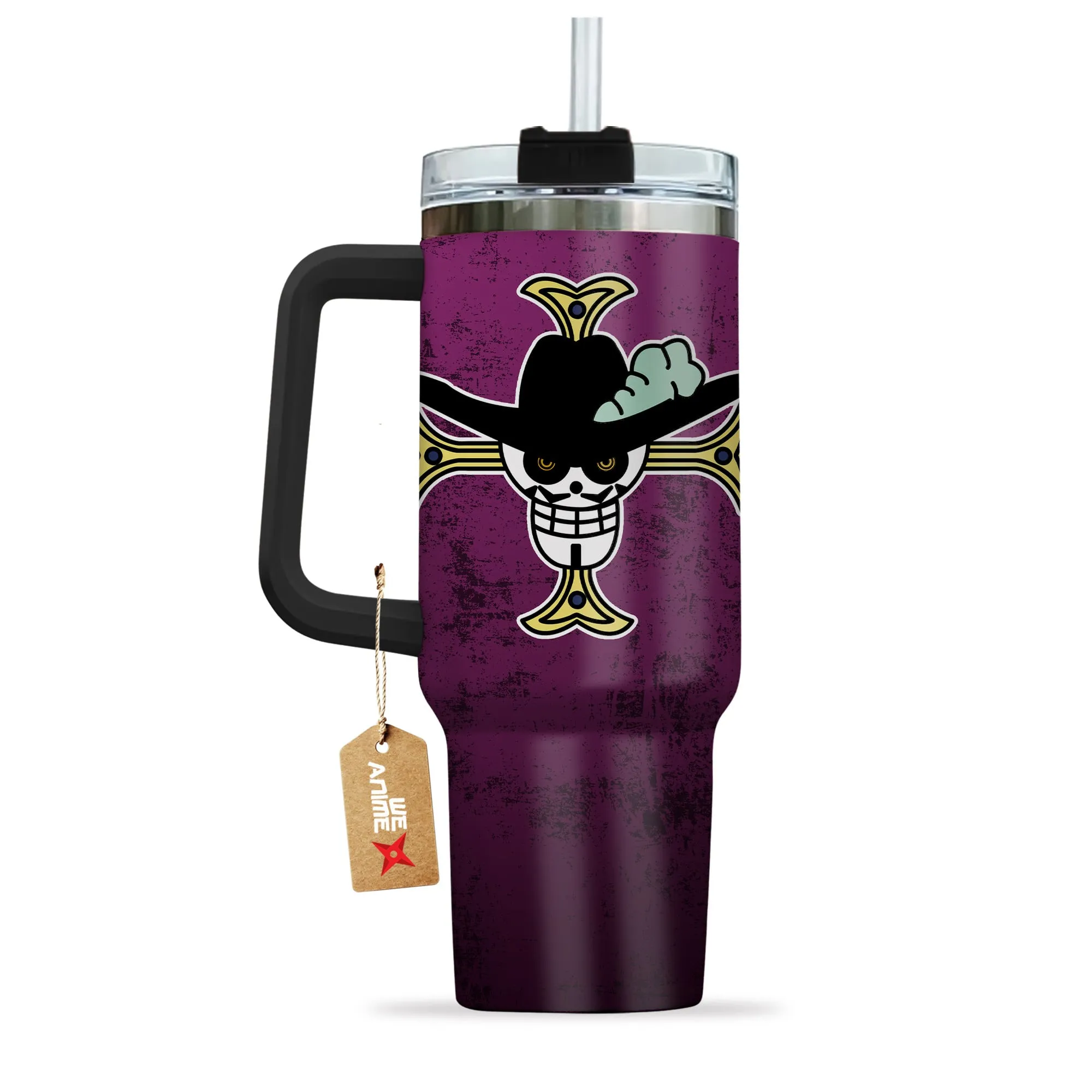 Dracule Mihawk 40oz Travel Tumbler With Handle Custom Name Anime Accessories