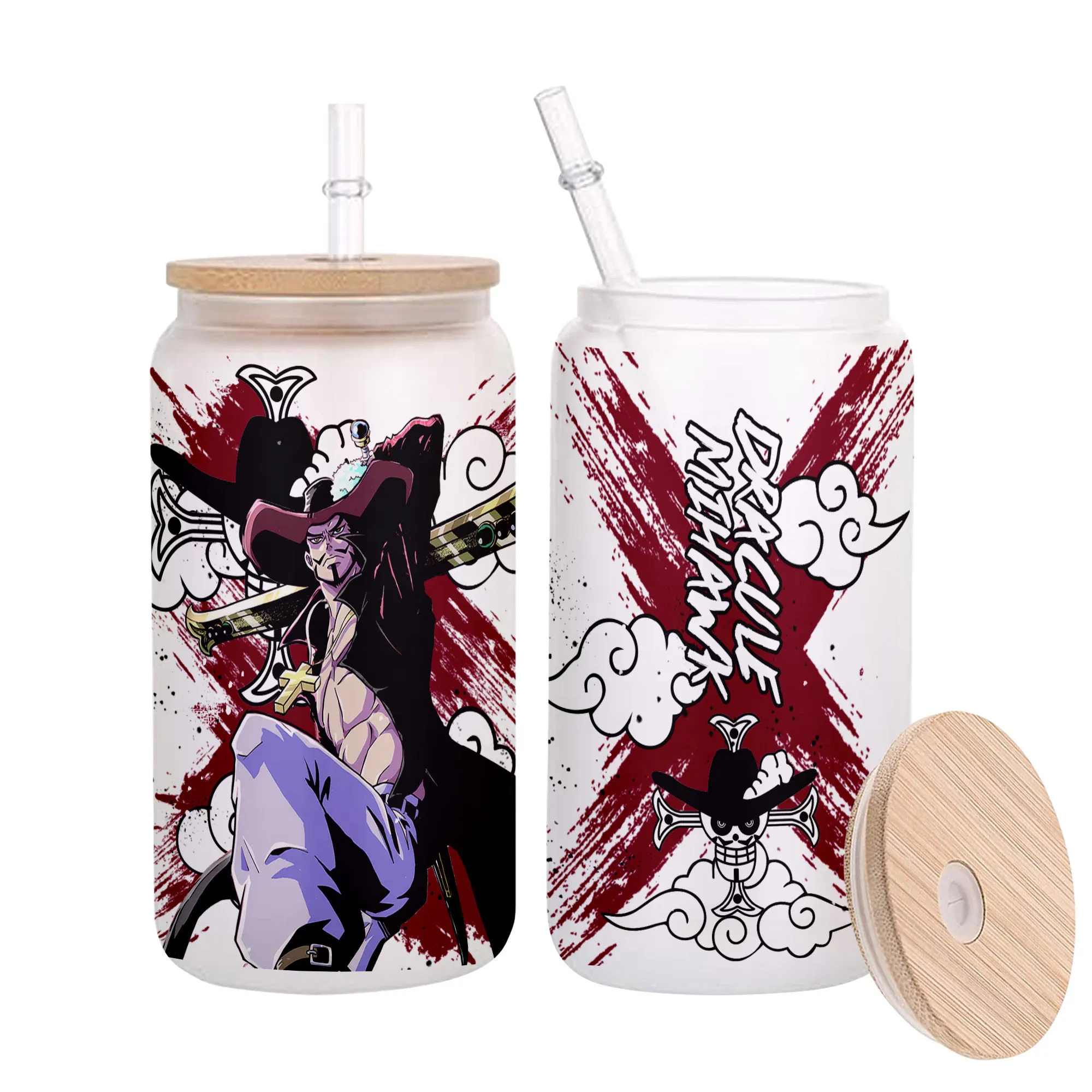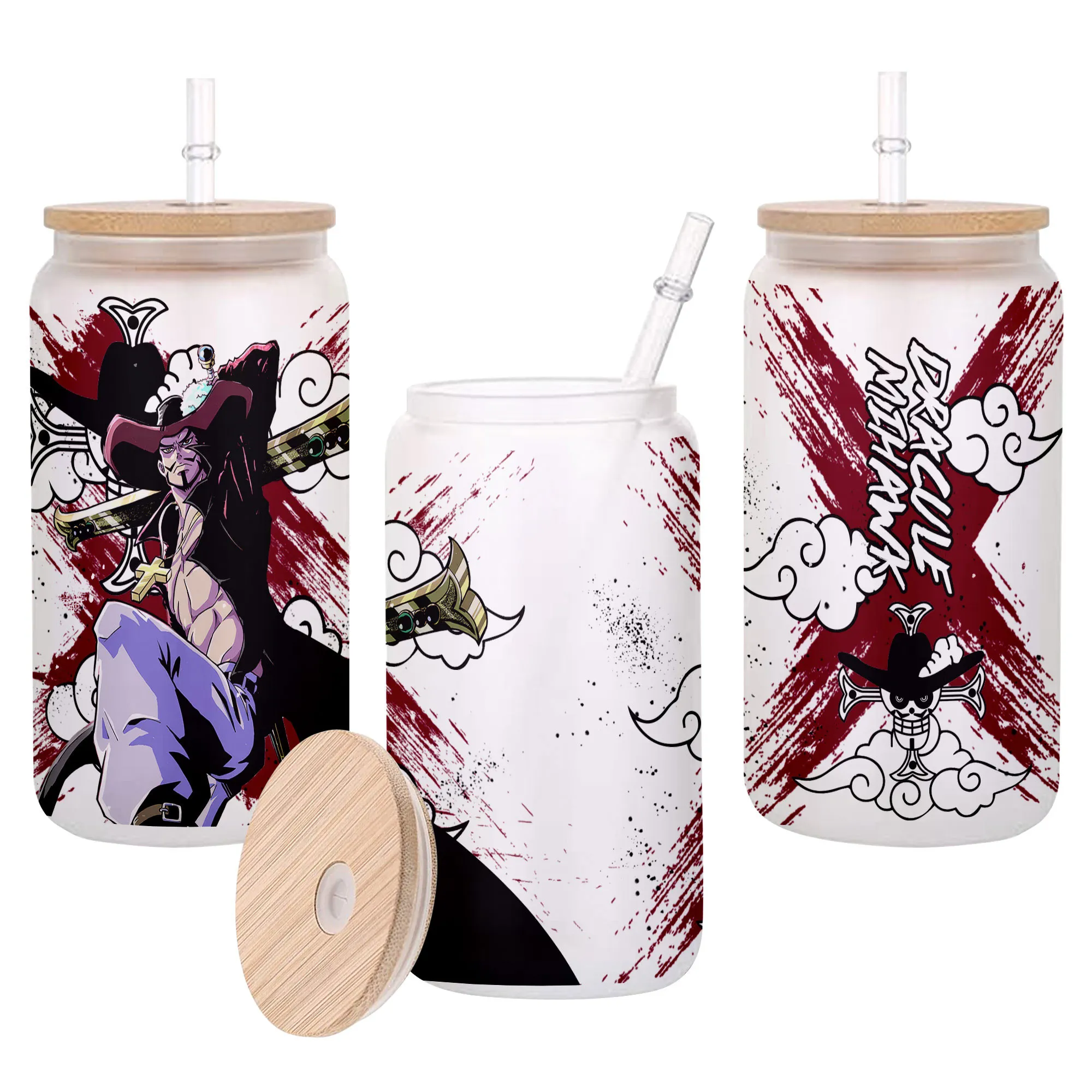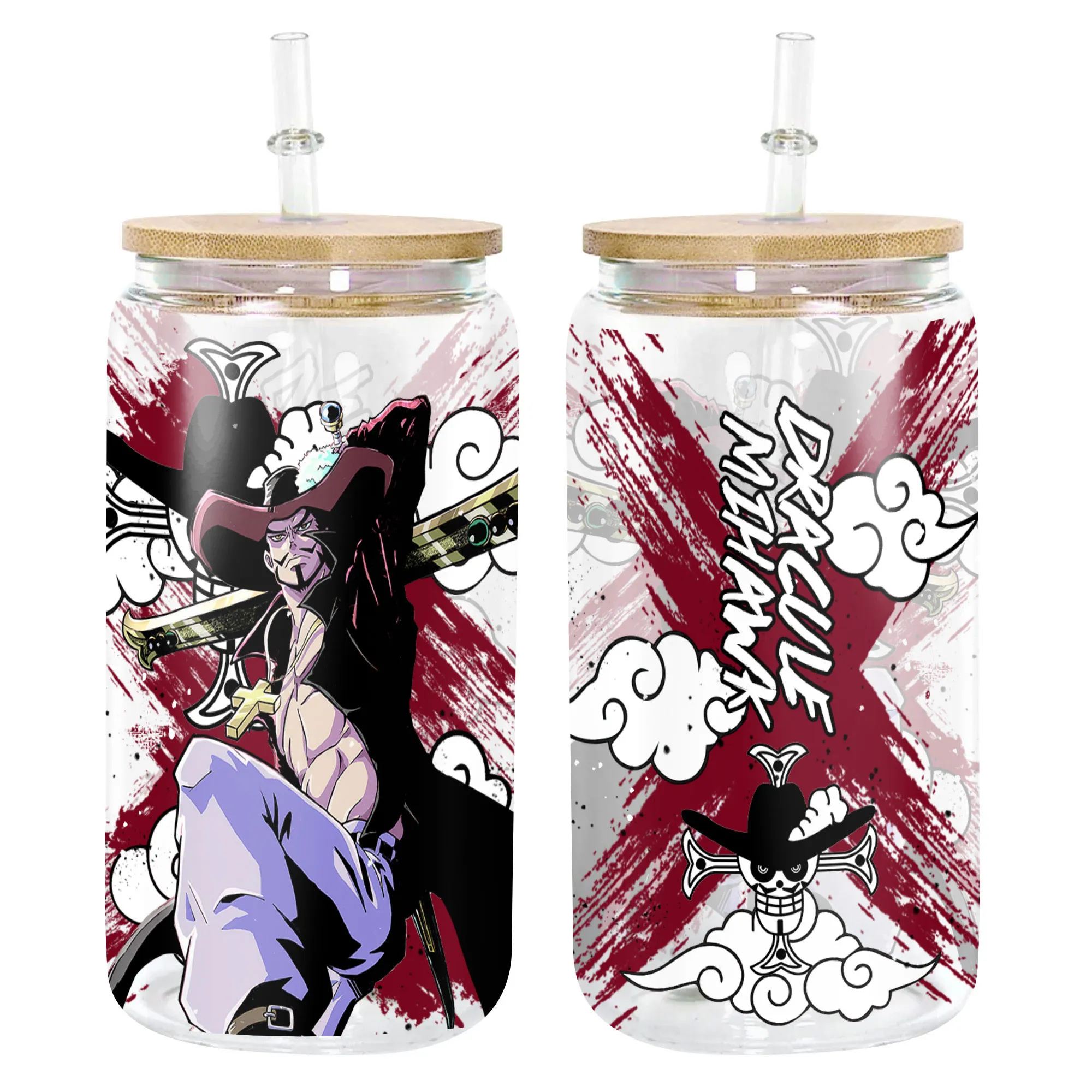 Dracule Mihawk Anime Glass Can 16oz Custom Personalized Water Bottle