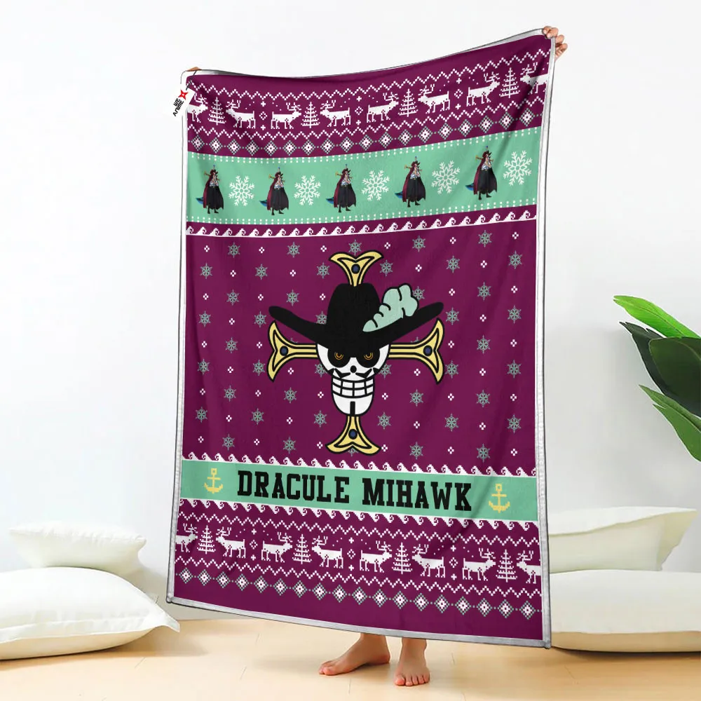 Dracule Mihawk Fleece Blanket Custom One Piece Symbol Anime