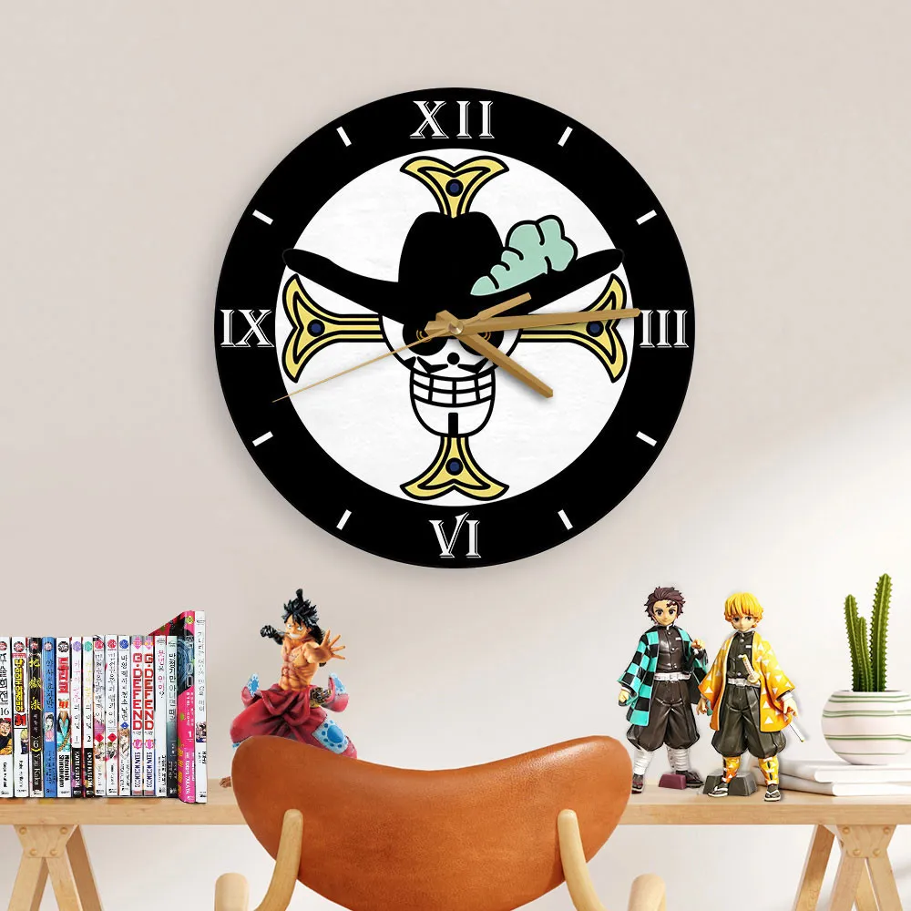 Dracule Mihawk Symbols Wooden Clock Anime Wall Clock