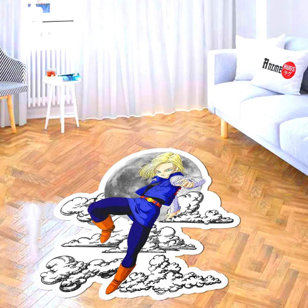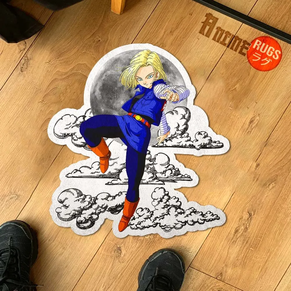 Dragon Ball Android 18 Shaped Rug Custom Moon Clouds Anime Room Decor