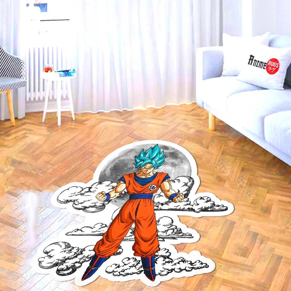 Dragon Ball Goku Blue Shaped Rug Custom Moon Clouds Anime Room Decor