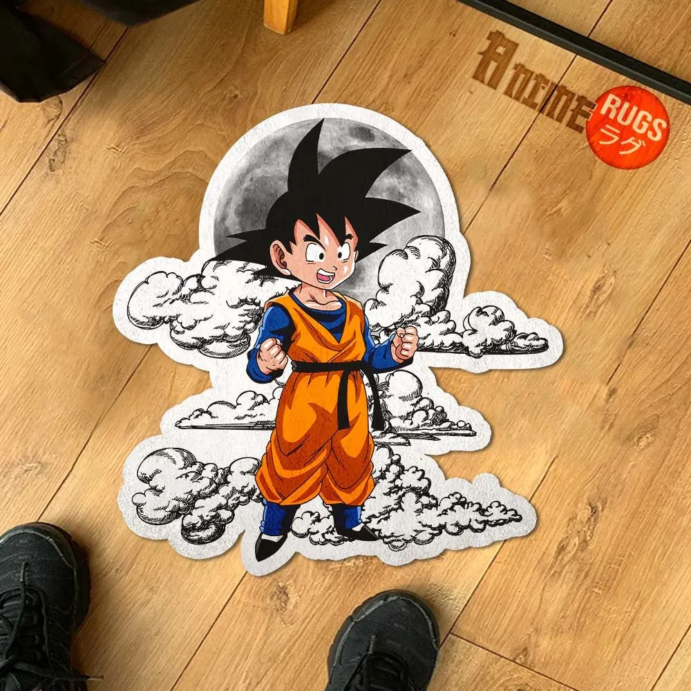 Dragon Ball Goten Shaped Rug Custom Moon Clouds Anime Room Decor