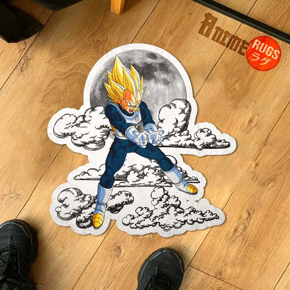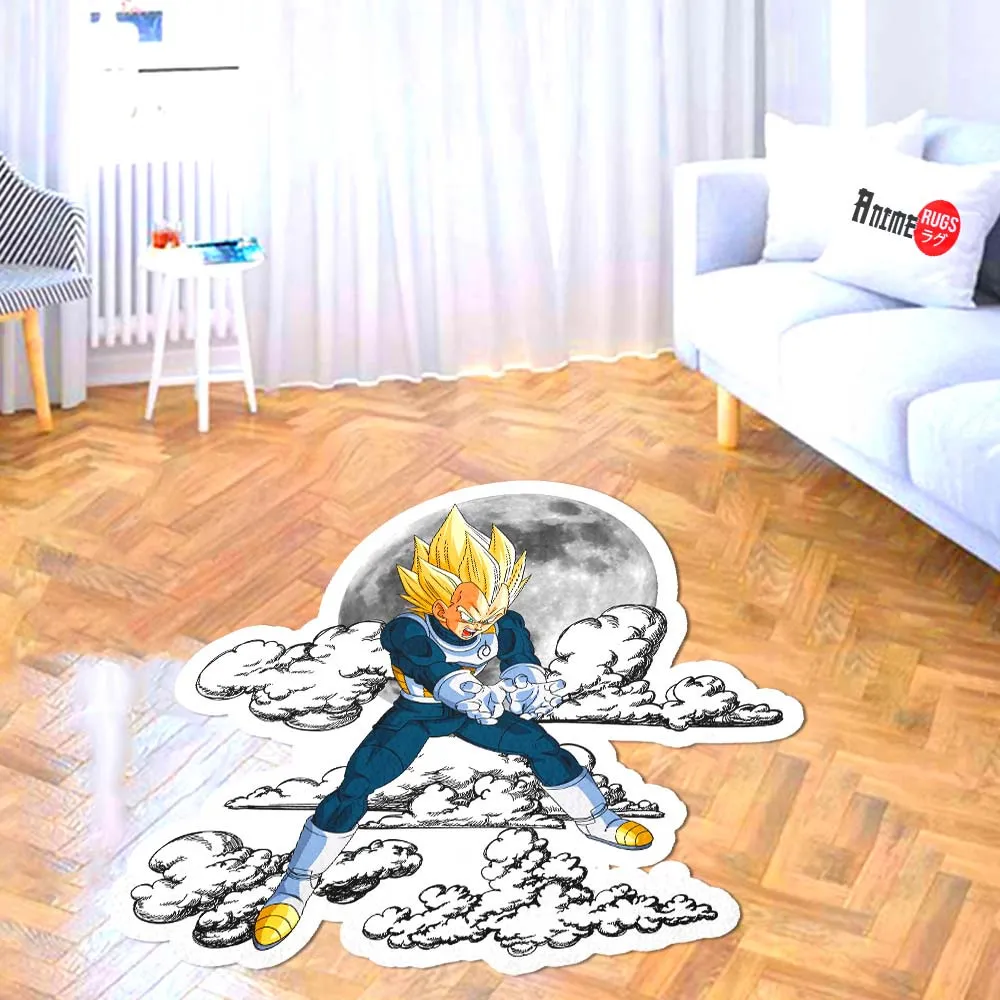 Dragon Ball Vegeta SSJ Shaped Rug Custom Moon Clouds Anime Room Decor
