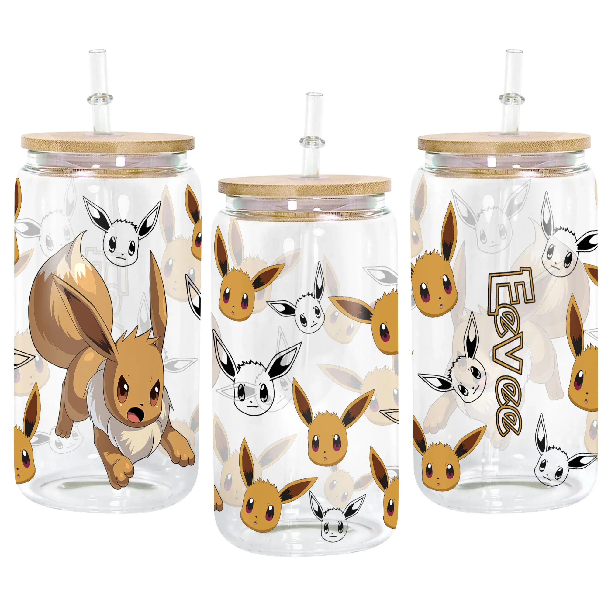 Eevee Glass Can 16oz Anime Personalized Name