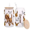 All of our Glass Can 16oz are custom-made-to-order and handcraftedwith high-quality glass material and accompanied by a convenient hard plastic straw and a wooden lid with a convenient hold for straw.