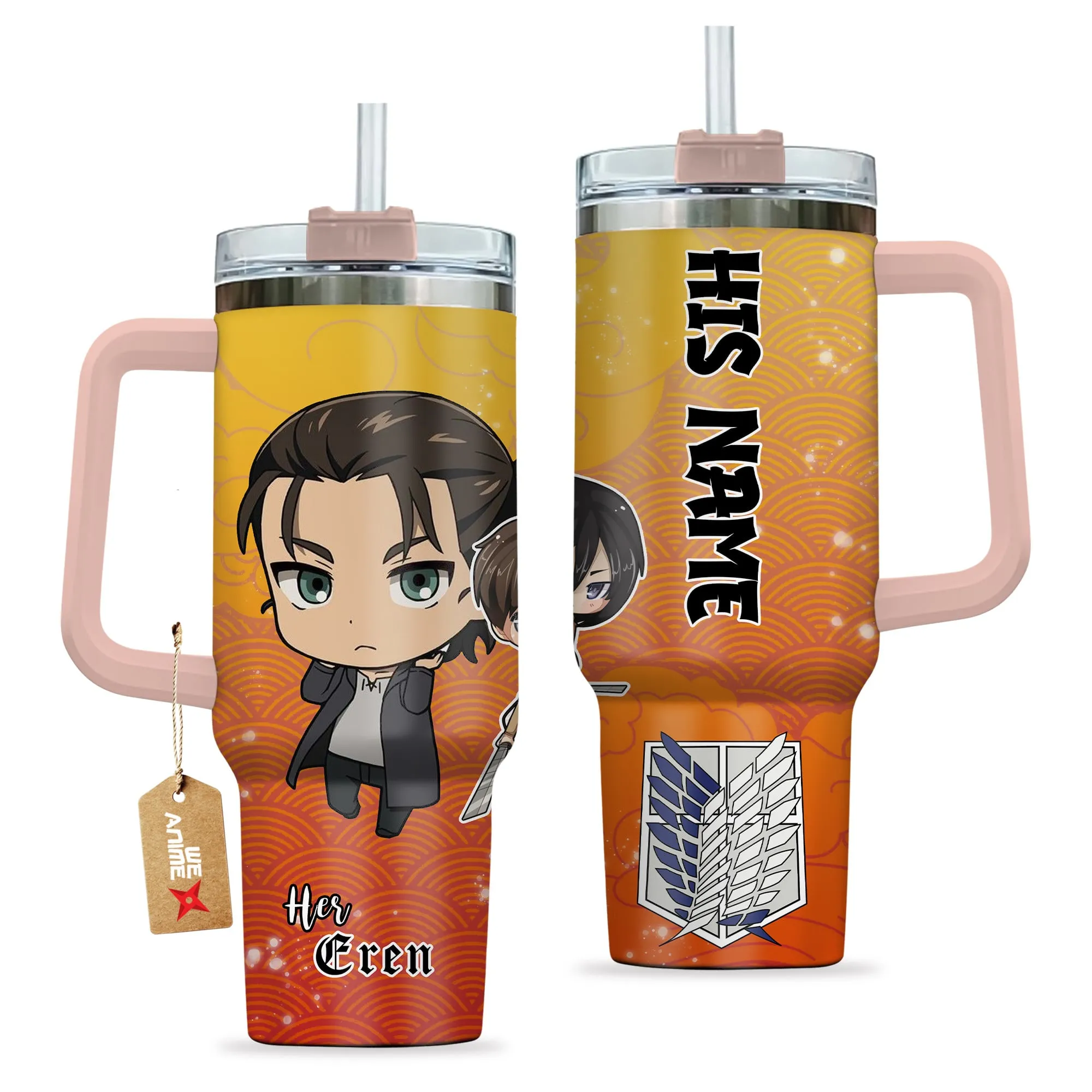 Eren 40oz Travel Tumbler With Handle Personalized Her and His Valentines Collection