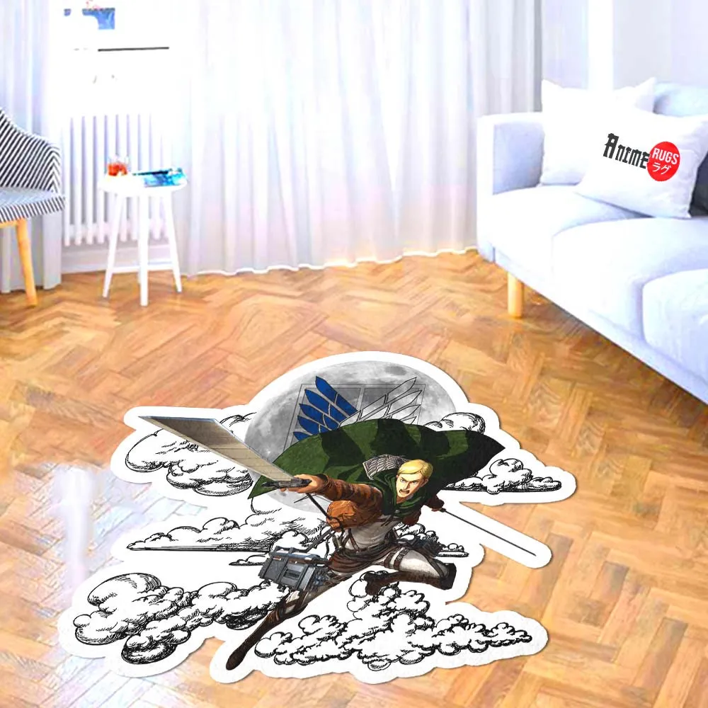 Erwin Smith Shaped Rug Custom Moon Clouds Attack On Titan Anime Room Decor