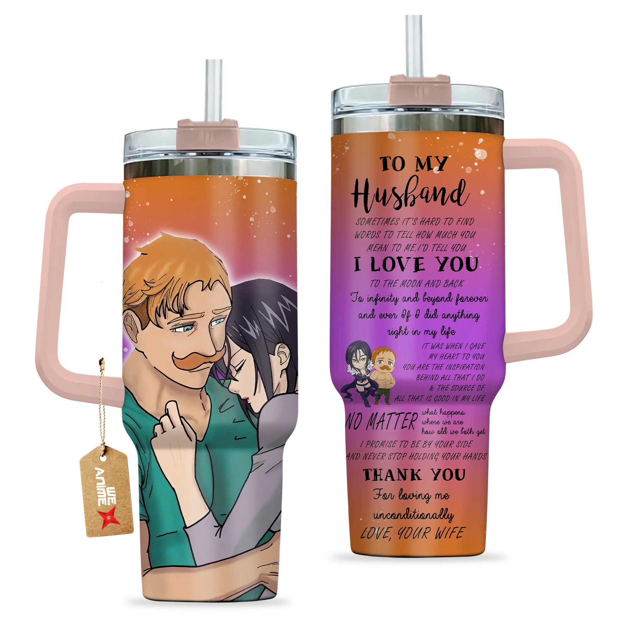 Escanor & Merlin 40oz Travel Tumbler With Handle Personalized To My Love Valentines Collection