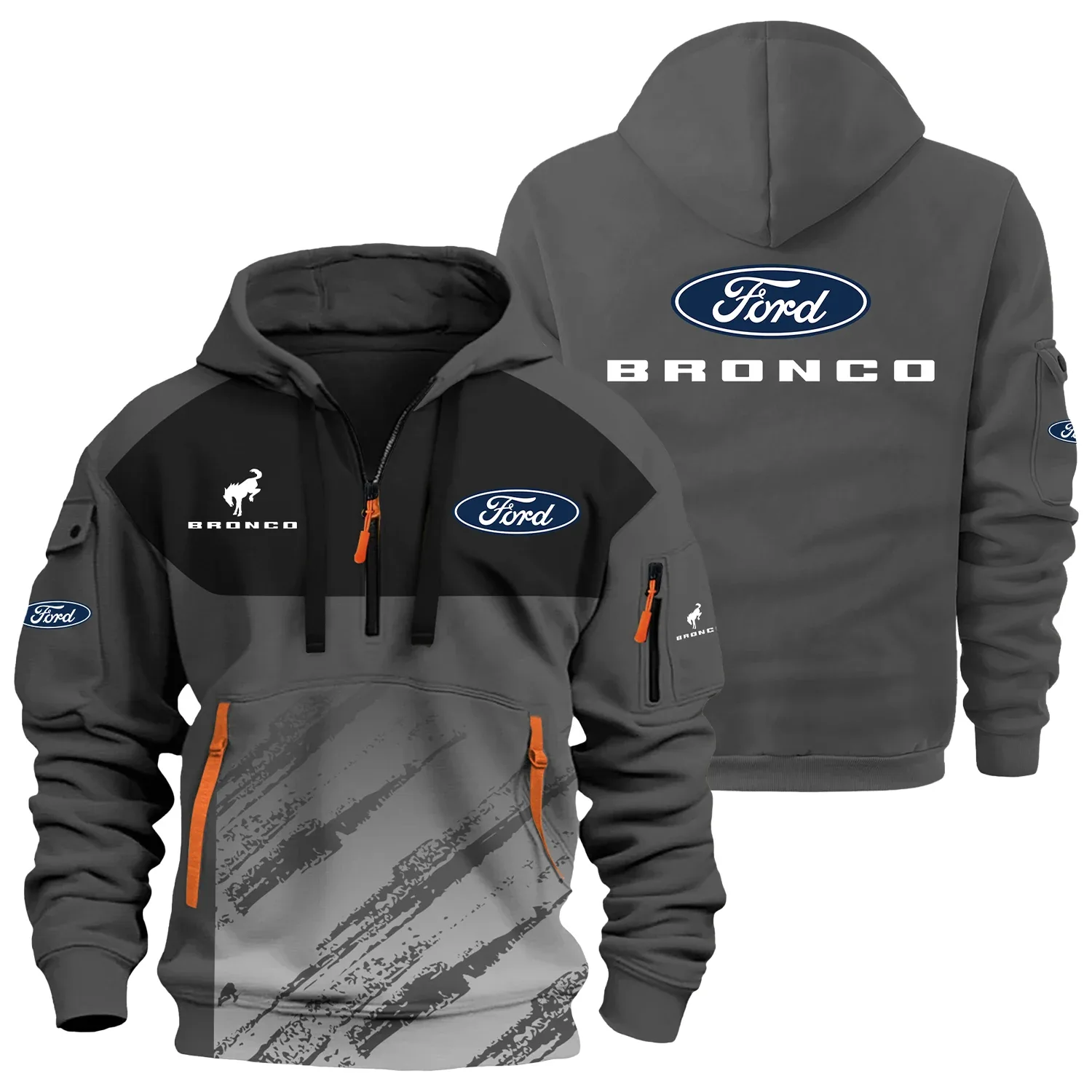 Elevate your wardrobe with our Ford Bronco hoodie, meticulously crafted for both function and fashion. Featuring long sleeves for added warmth and coverage, this half zipper hoodie keeps you comfortable in cooler conditions. The hooded neckline adds a modern, trendy touch to the ensemble, making it a perfect choice for those who appreciate a contemporary look.