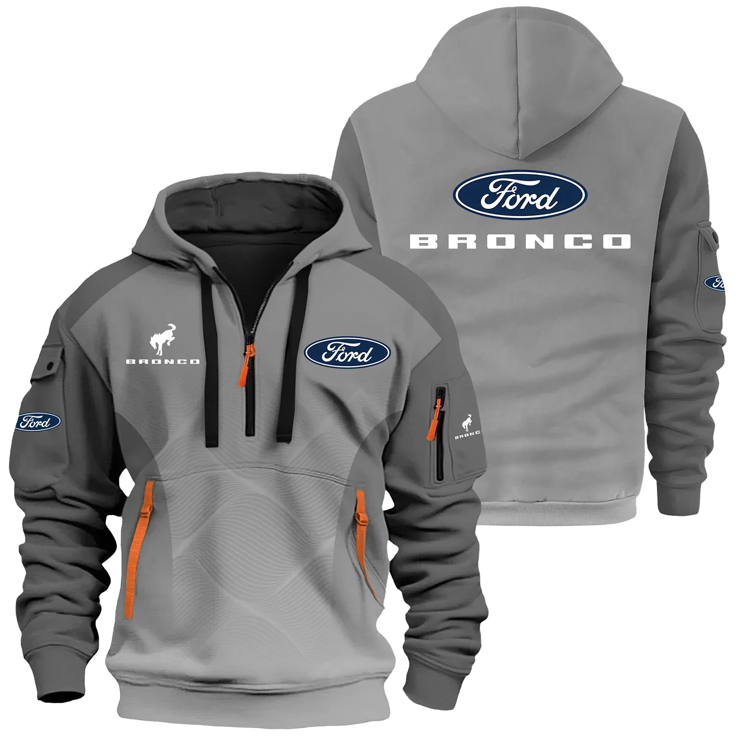 Elevate your wardrobe with our Ford Bronco hoodie, meticulously crafted for both function and fashion. Featuring long sleeves for added warmth and coverage, this half zipper hoodie keeps you comfortable in cooler conditions. The hooded neckline adds a modern, trendy touch to the ensemble, making it a perfect choice for those who appreciate a contemporary look.