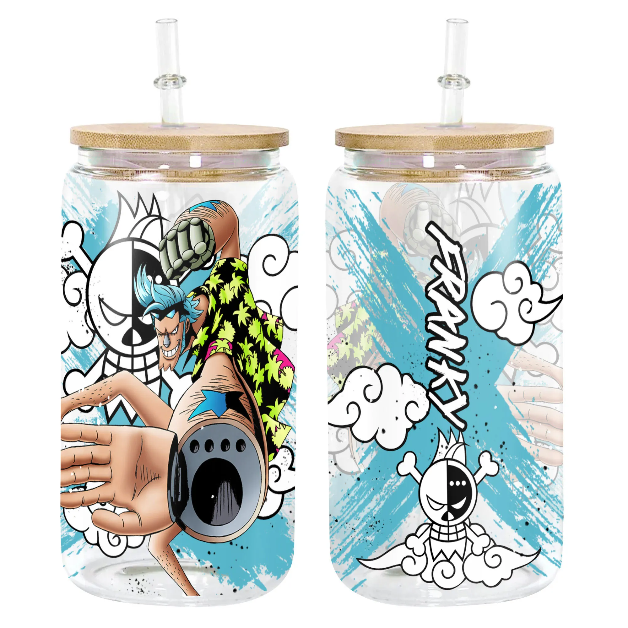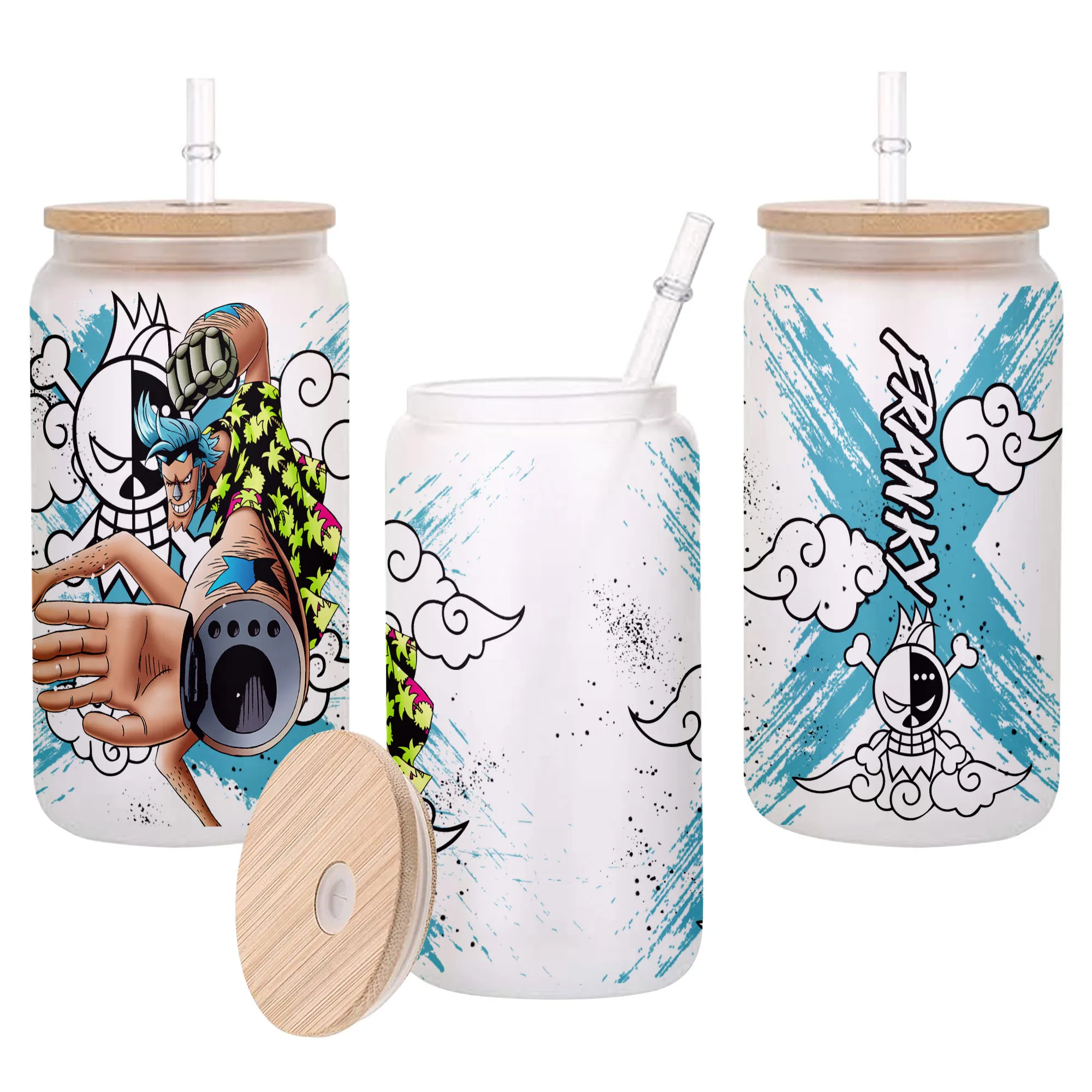 Franky Anime Glass Can 16oz Custom Personalized Water Bottle