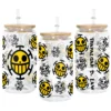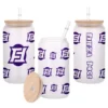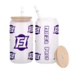 All of our Glass Can 16oz are custom-made-to-order and handcraftedwith high-quality glass material and accompanied by a convenient hard plastic straw and a wooden lid with a convenient hold for straw.