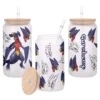 All of our Glass Can 16oz are custom-made-to-order and handcraftedwith high-quality glass material and accompanied by a convenient hard plastic straw and a wooden lid with a convenient hold for straw.