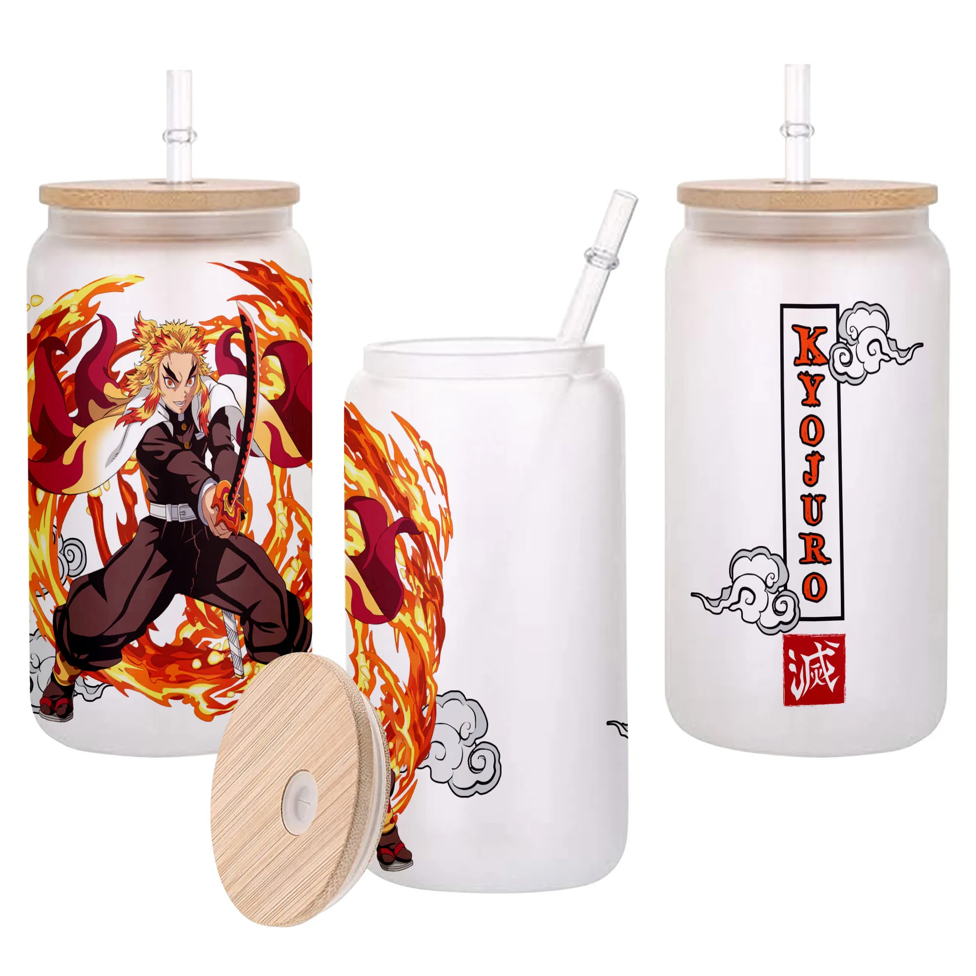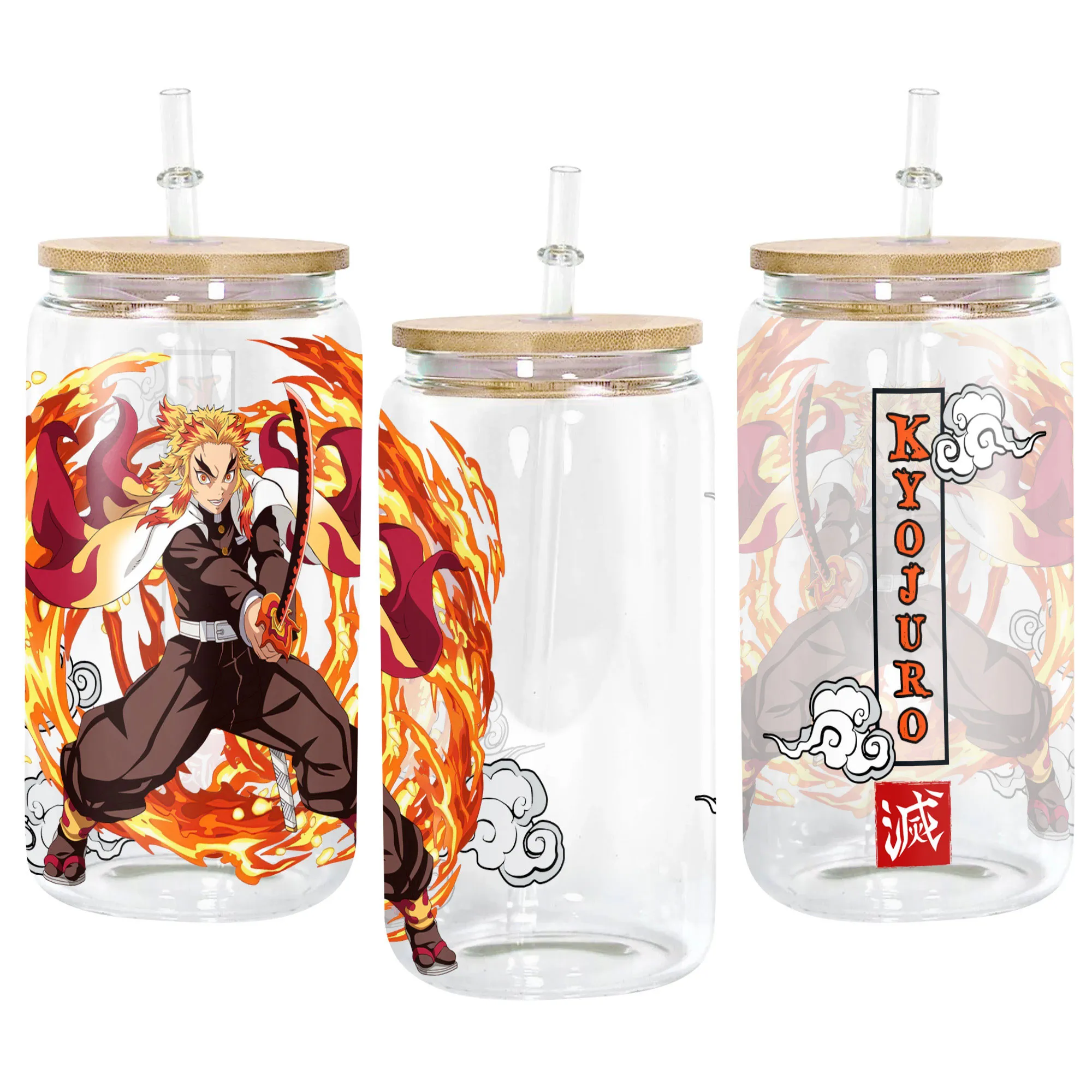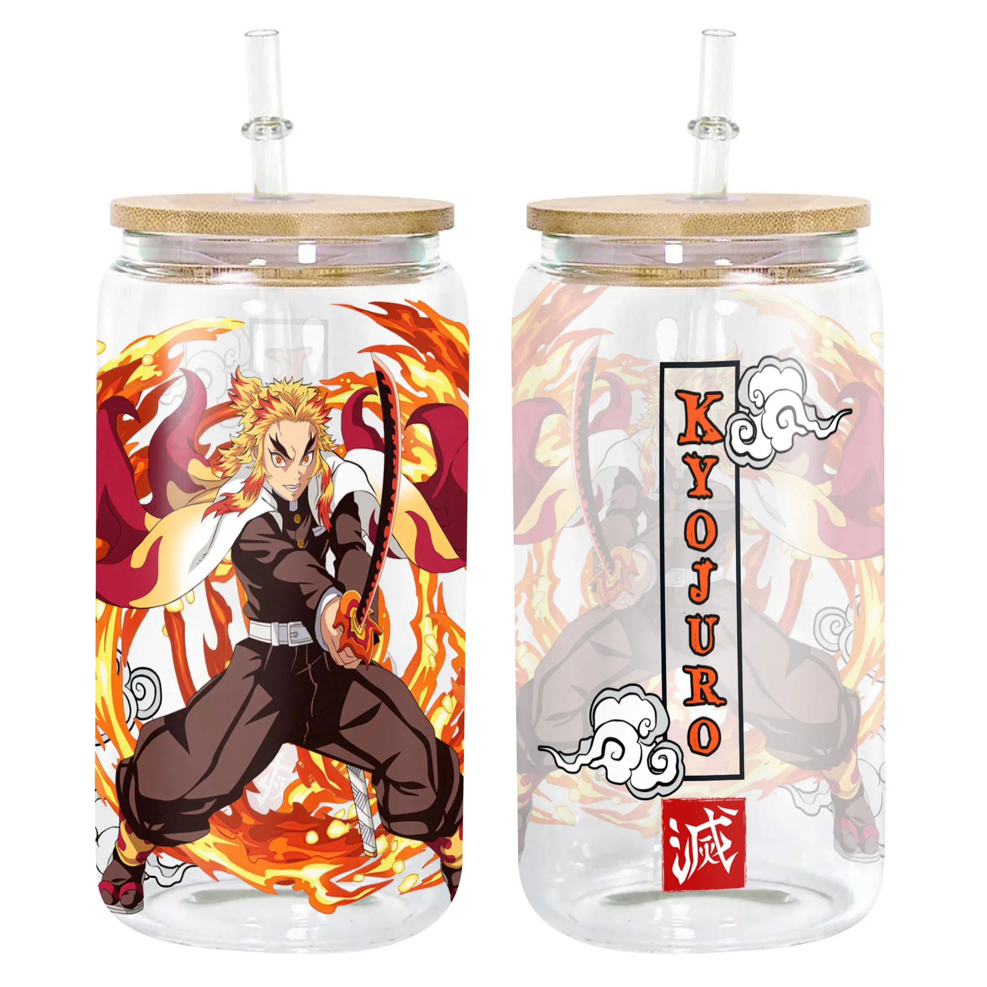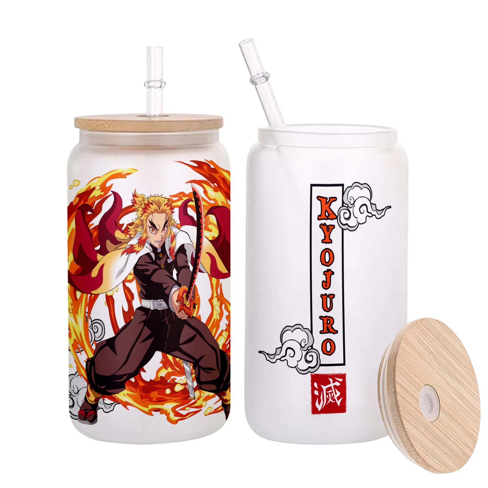 Glass Can 16oz Anime Water Bottle Kyojuro Rengoku Personalized Name