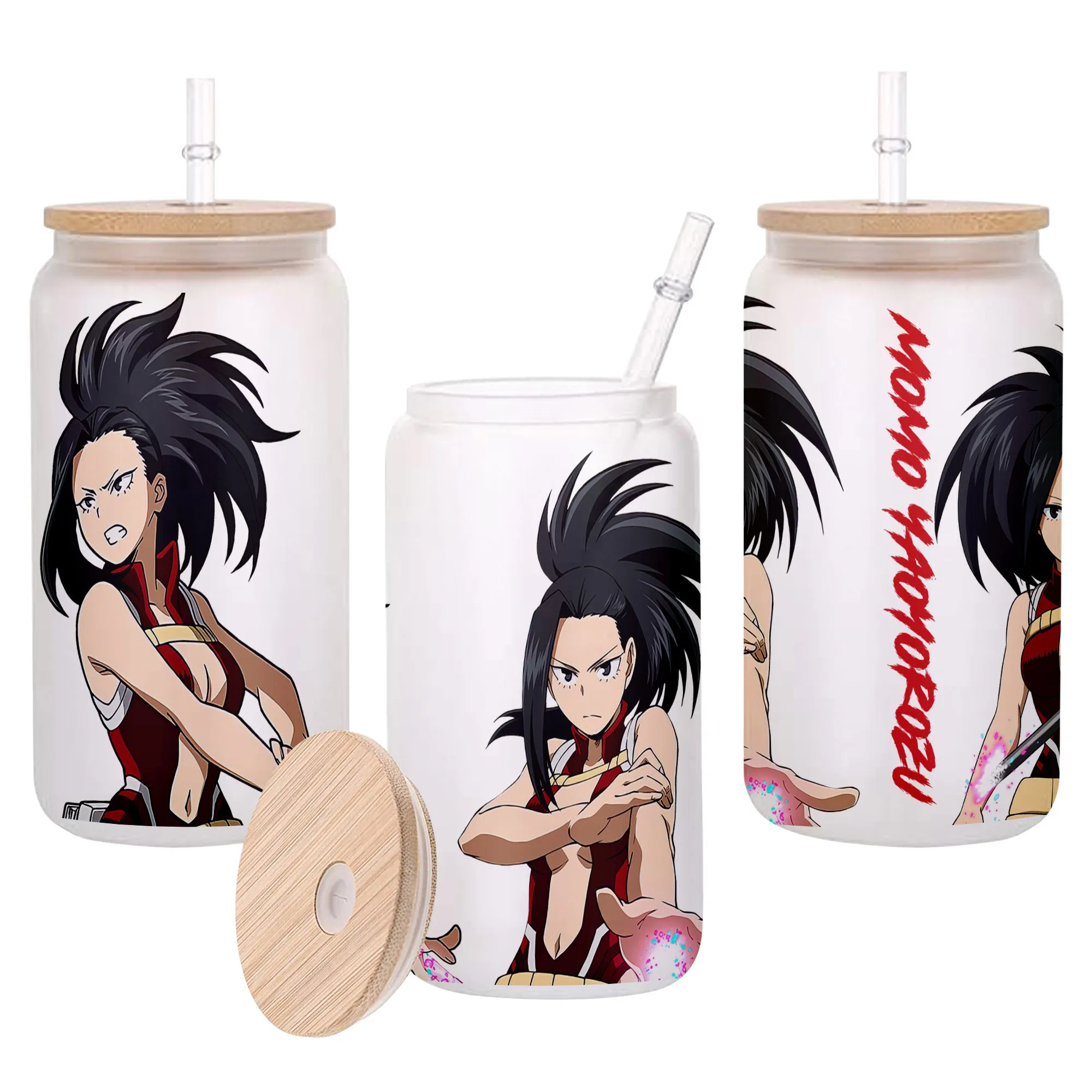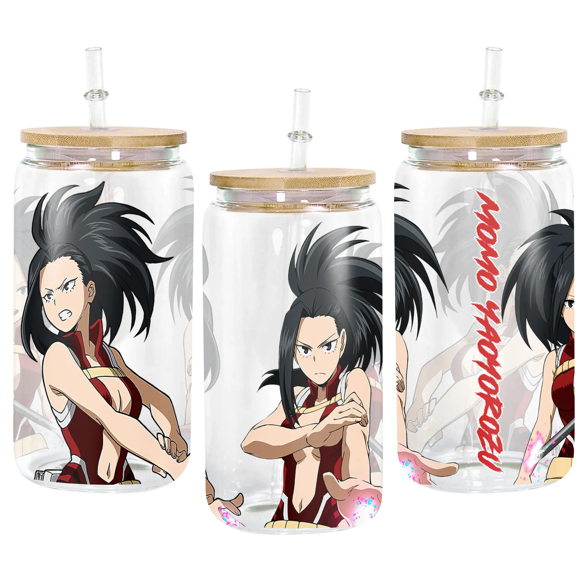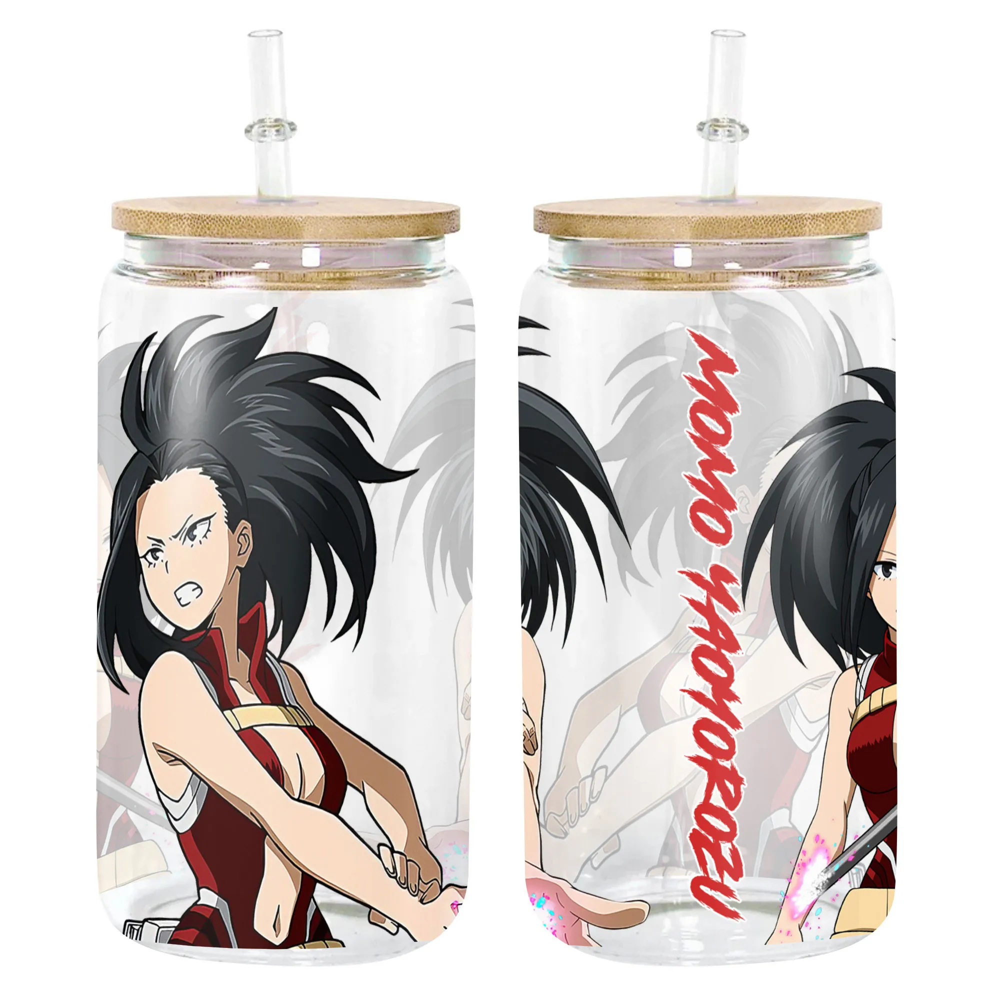 Glass Can 16oz Anime Water Bottle Momo Yaoyorozu Personalized Name