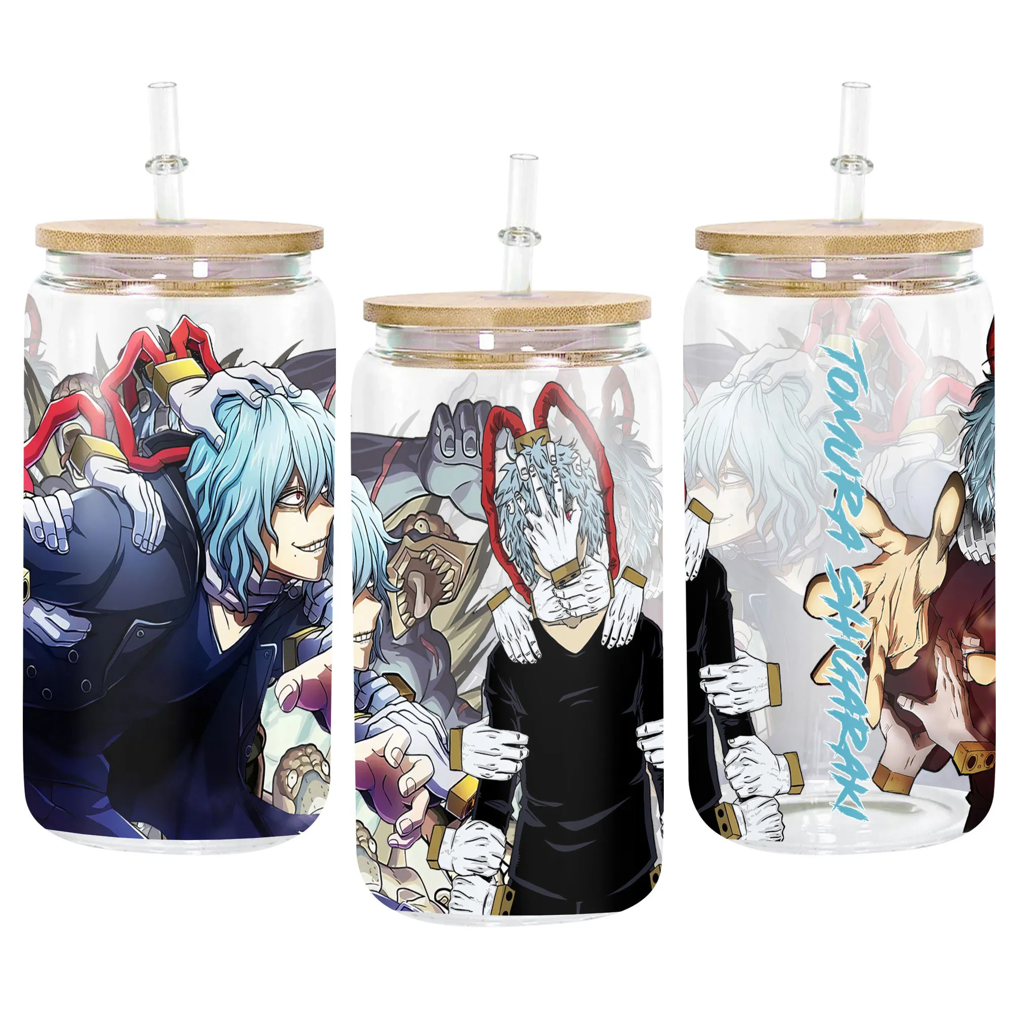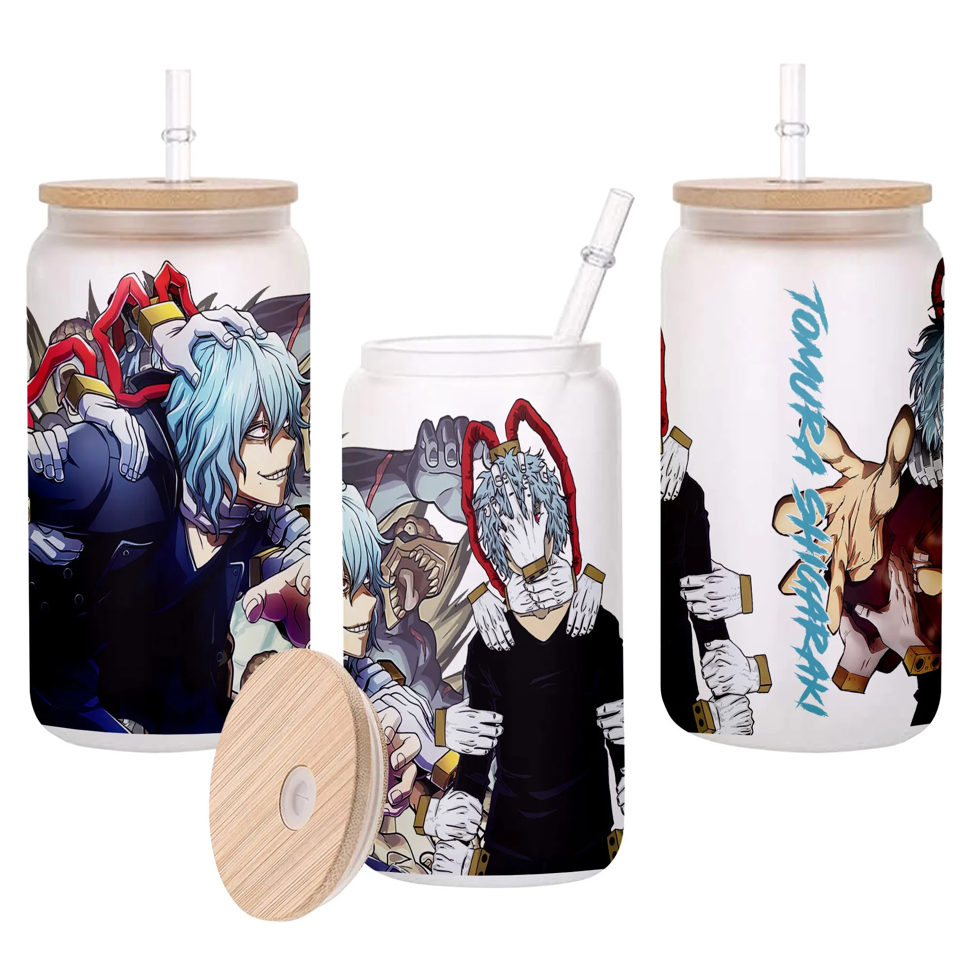 Glass Can 16oz Anime Water Bottle Tomura Shigaraki Personalized Name