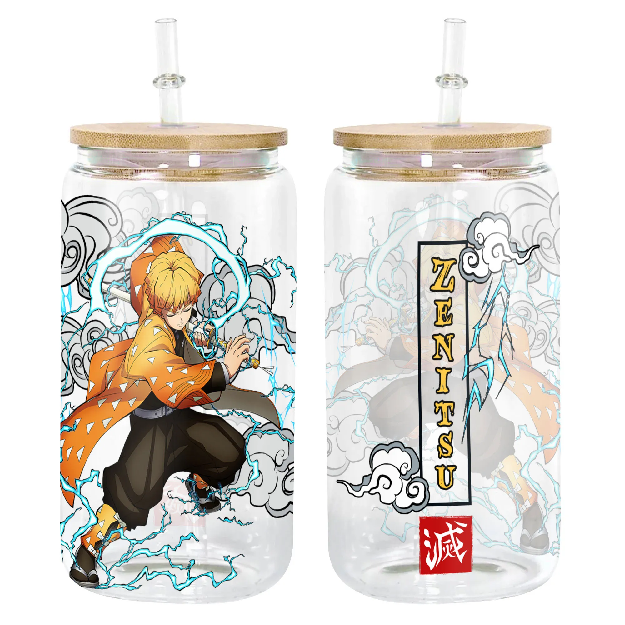 Glass Can 16oz Anime Water Bottle Zenitsu Agatsuma Personalized Name