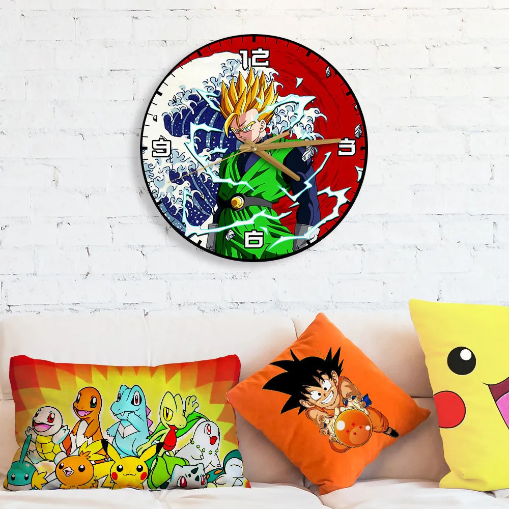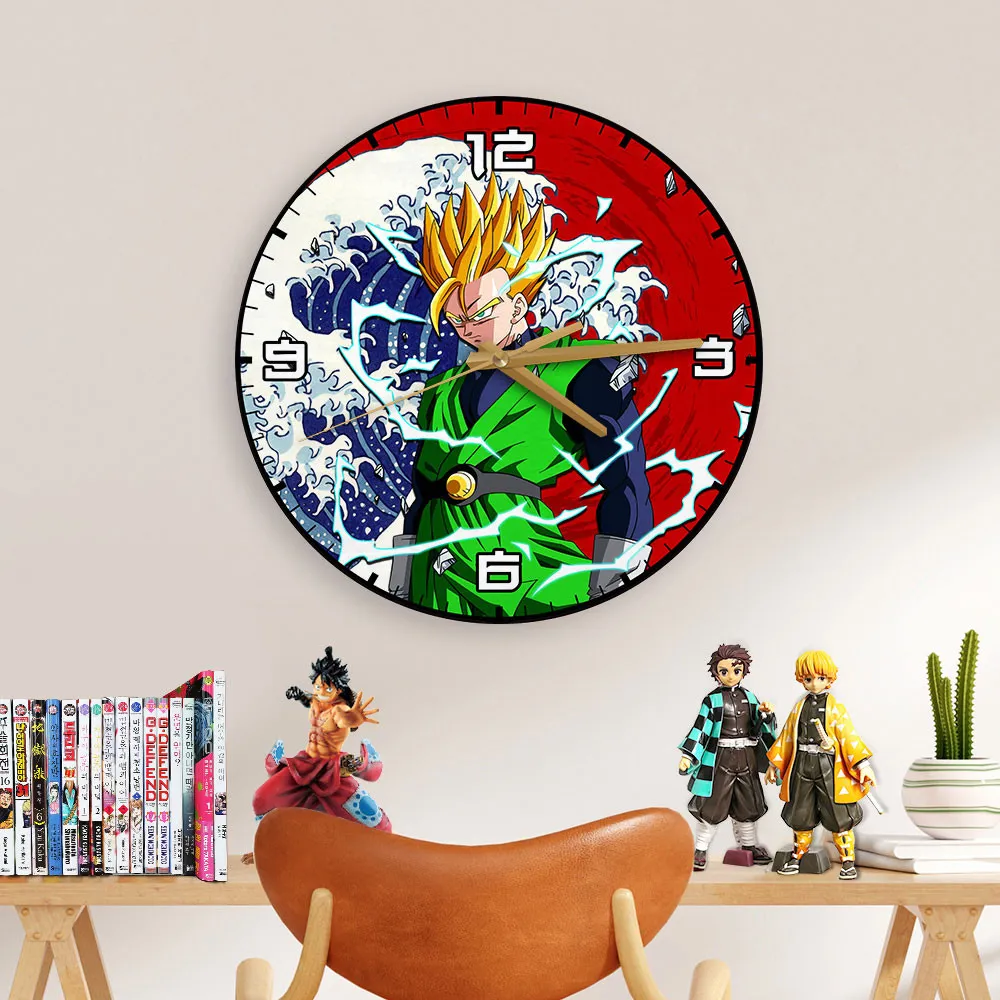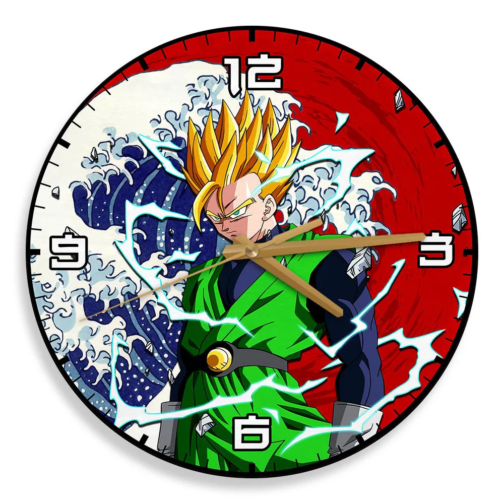 Gohan Adult Super Saiyan 2 Kanagawa Wave Red Sun Anime Wooden Wall Clock