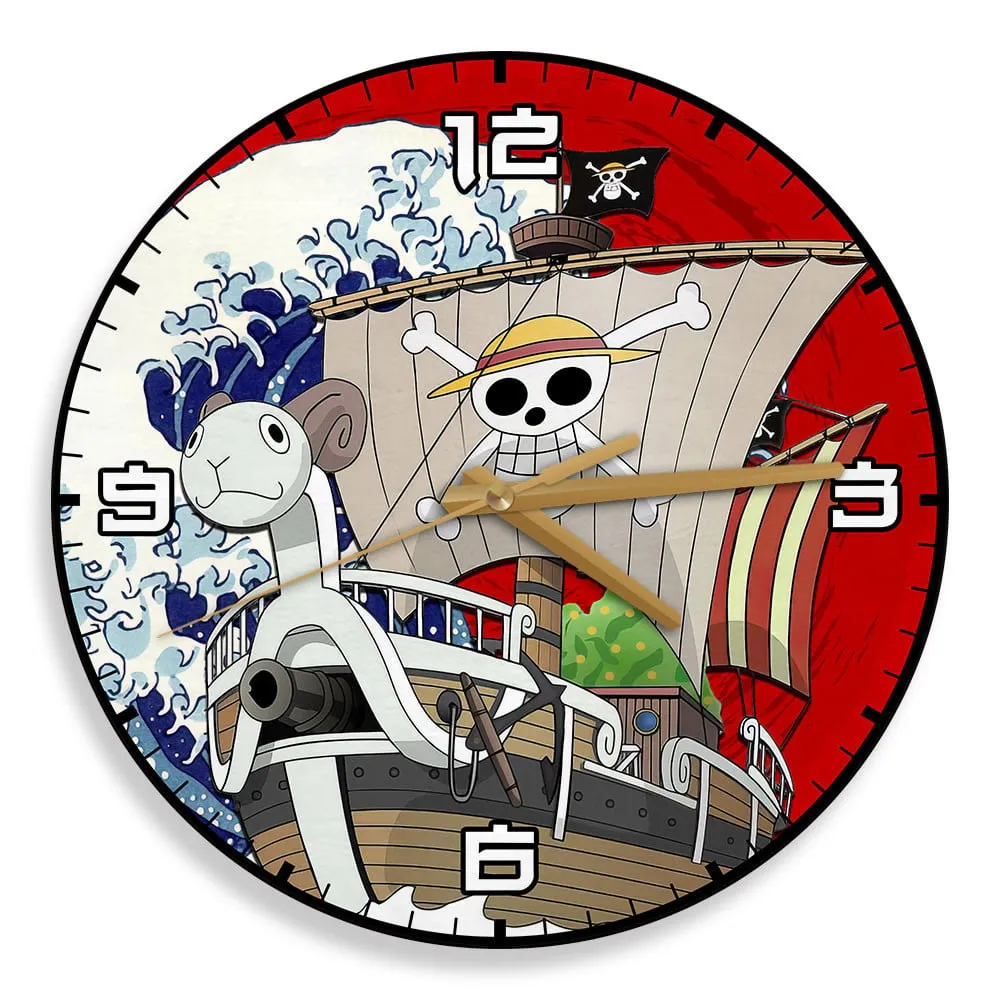 Going Merry Ship Kanagawa Wave Red Sun Anime Wooden Wall Clock-Wexanime