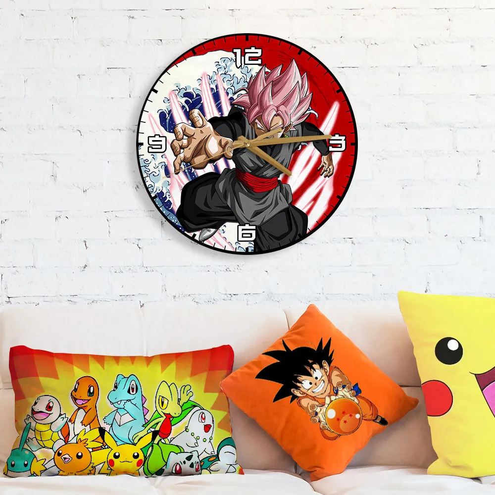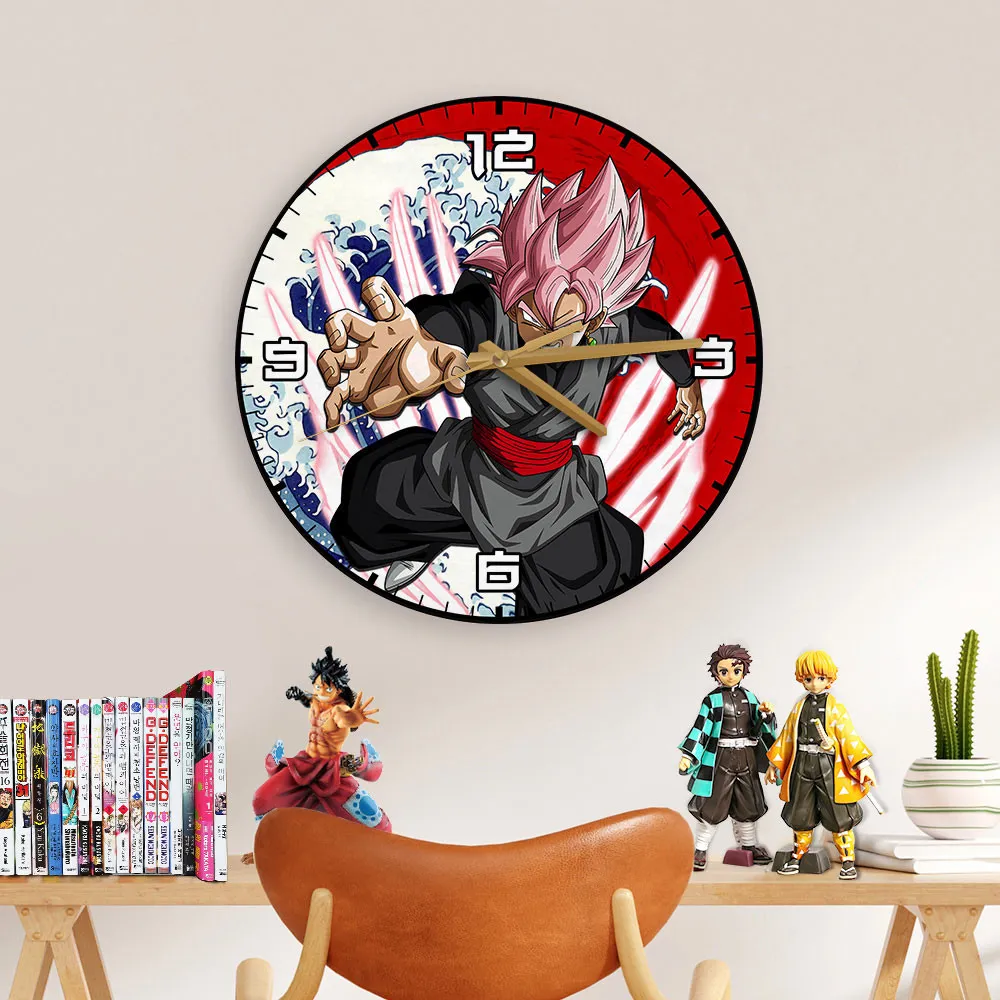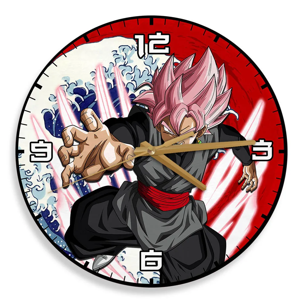 Goku Black Rose Kanagawa Wave Red Sun Anime Wooden Wall Clock