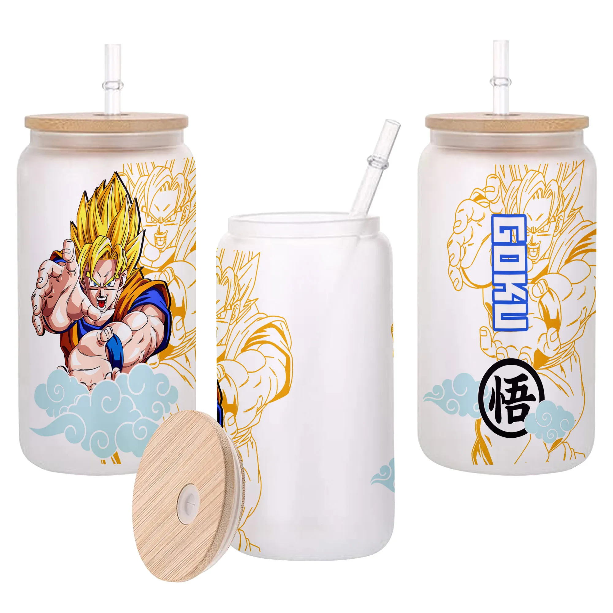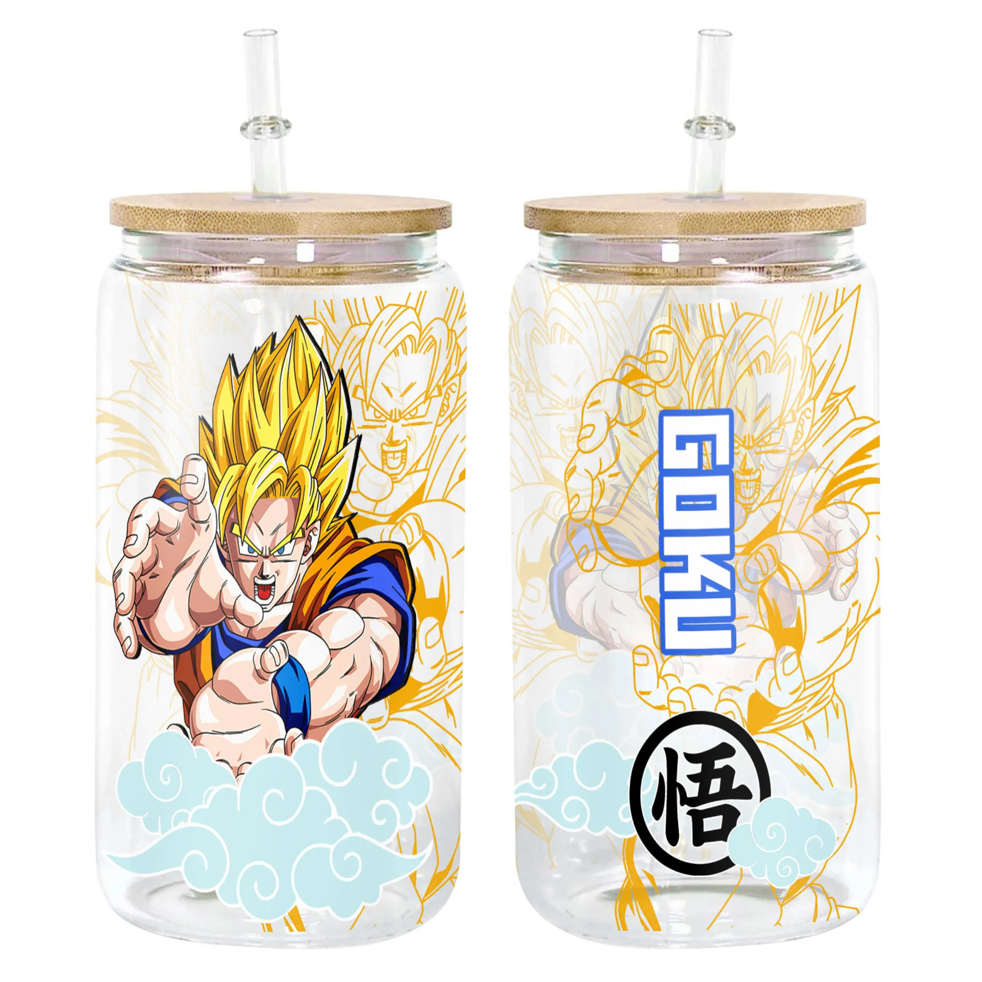 Goku Super Saiyan 2 Anime Glass Can 16oz Custom Personalized Water Bottle