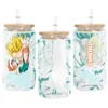 All of our Glass Can 16oz are custom-made-to-order and handcraftedwith high-quality glass material and accompanied by a convenient hard plastic straw and a wooden lid with a convenient hold for straw.