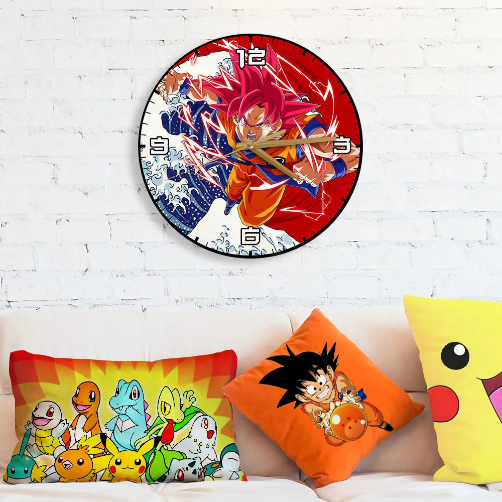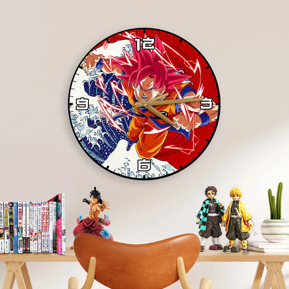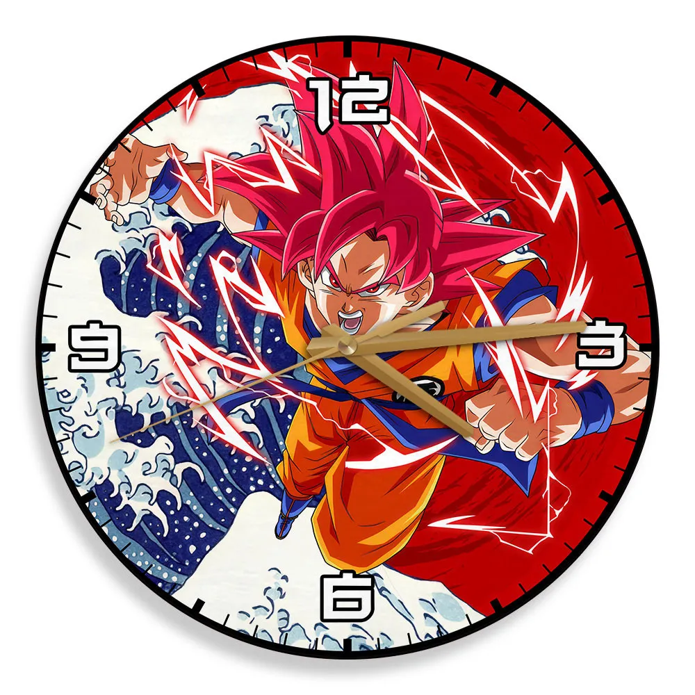 Goku Super Saiyan God Kanagawa Wave Red Sun Anime Wooden Wall Clock-Wexanime