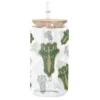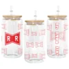 All of our Glass Can 16oz are custom-made-to-order and handcraftedwith high-quality glass material and accompanied by a convenient hard plastic straw and a wooden lid with a convenient hold for straw.